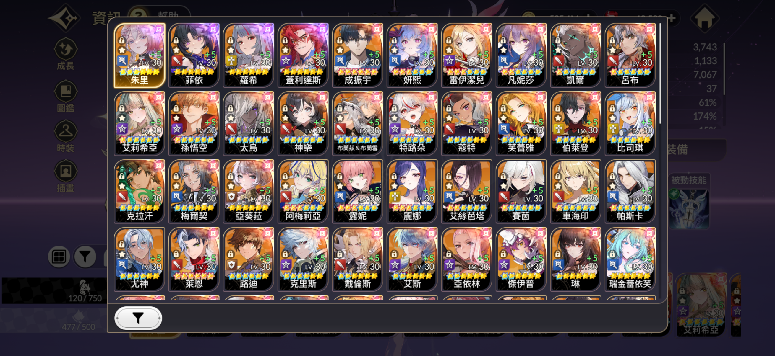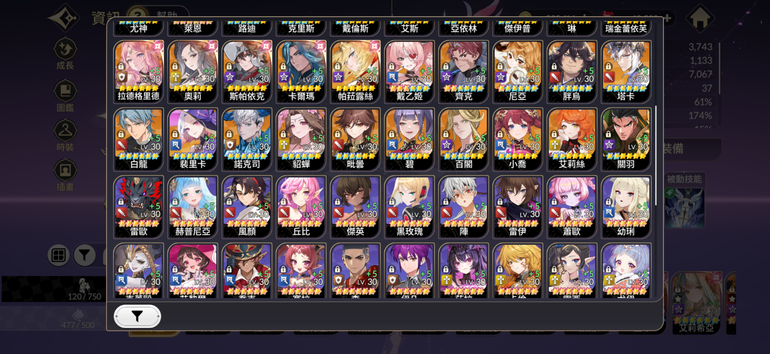從開服到現在持續遊玩到現在,角色都有很多6超,合作角色滿超越,傳說戒指也都有,寵物幾乎都有~很適合一拿到就想開心玩的你!