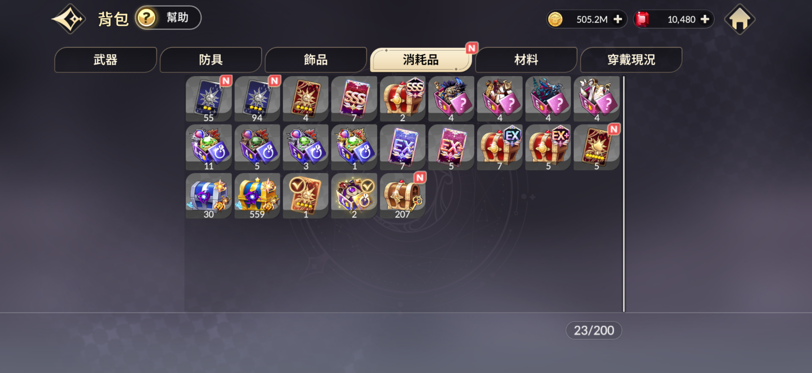 背包還有傳說卷、裝備卷沒使用