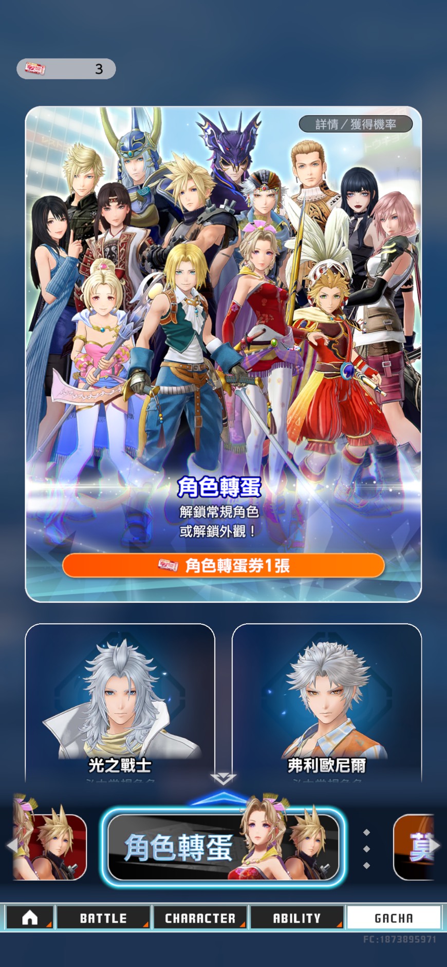 角色卷: 3張(角色缺普羅,其餘全都有)