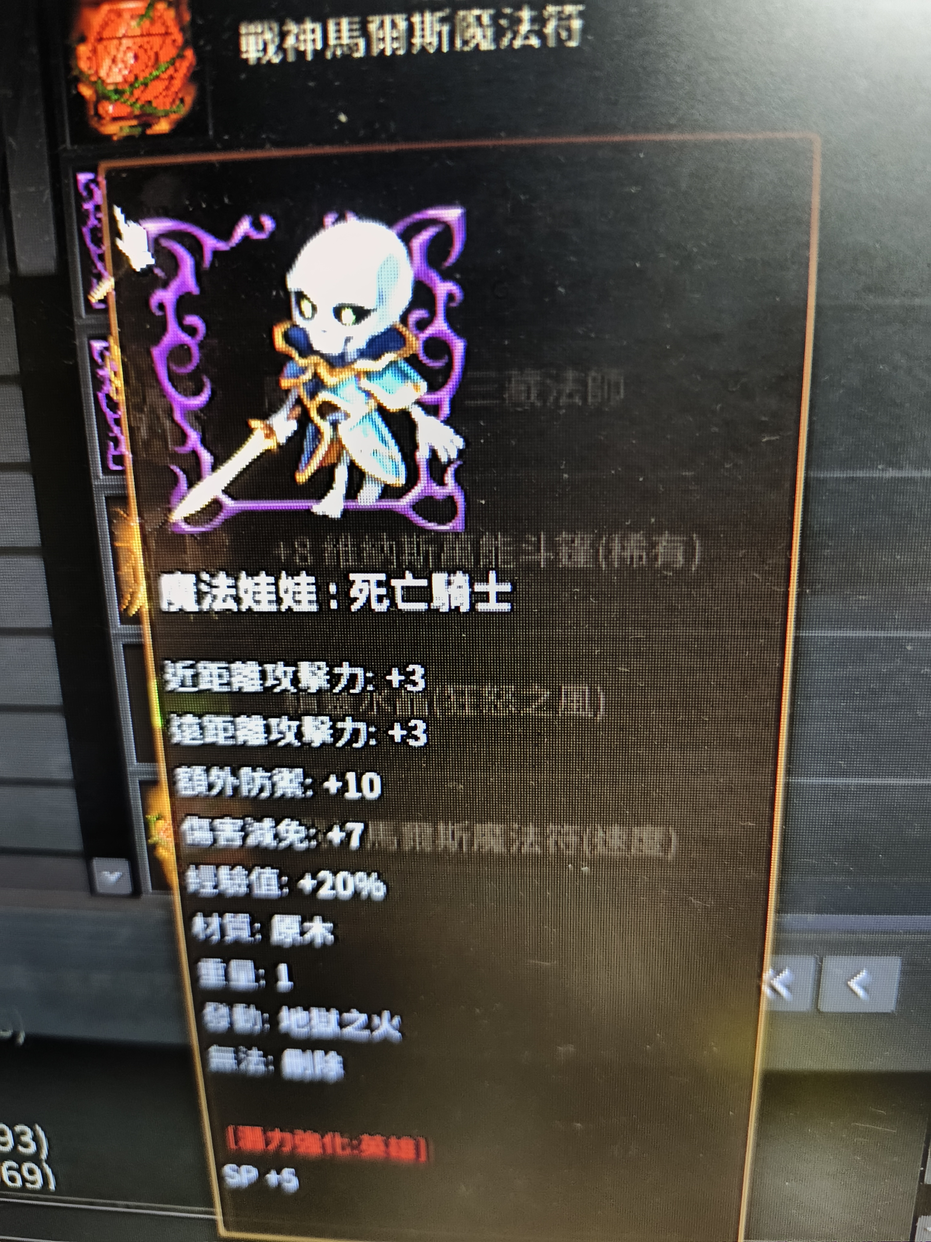 賣5階死亡騎士娃娃(紅潛力 魔攻+5% 經驗+20% 防禦+10)