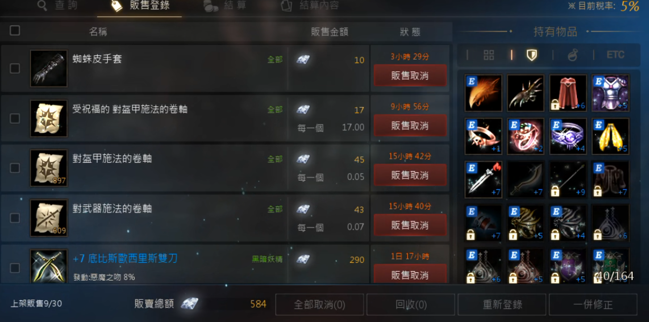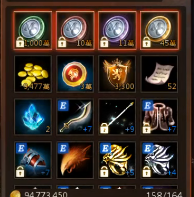 倉庫有7魔族單手劍、神聖精盾(刻印)、賀洛斯臂甲(刻印)、安迪斯之弓(刻印)