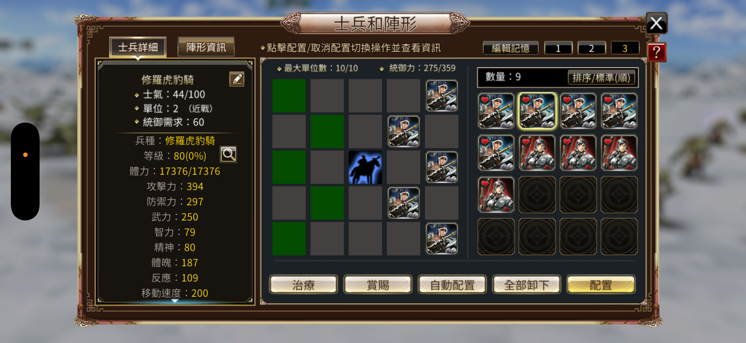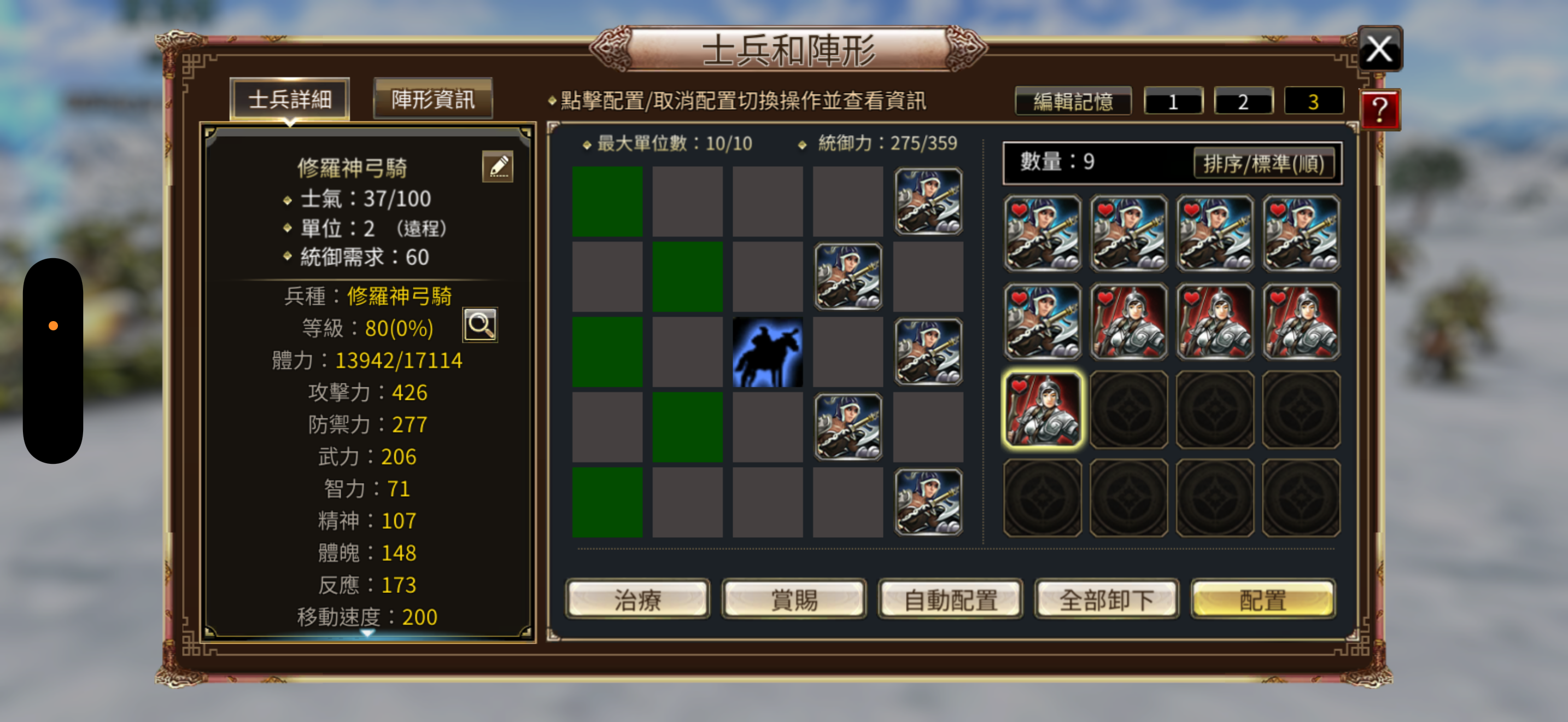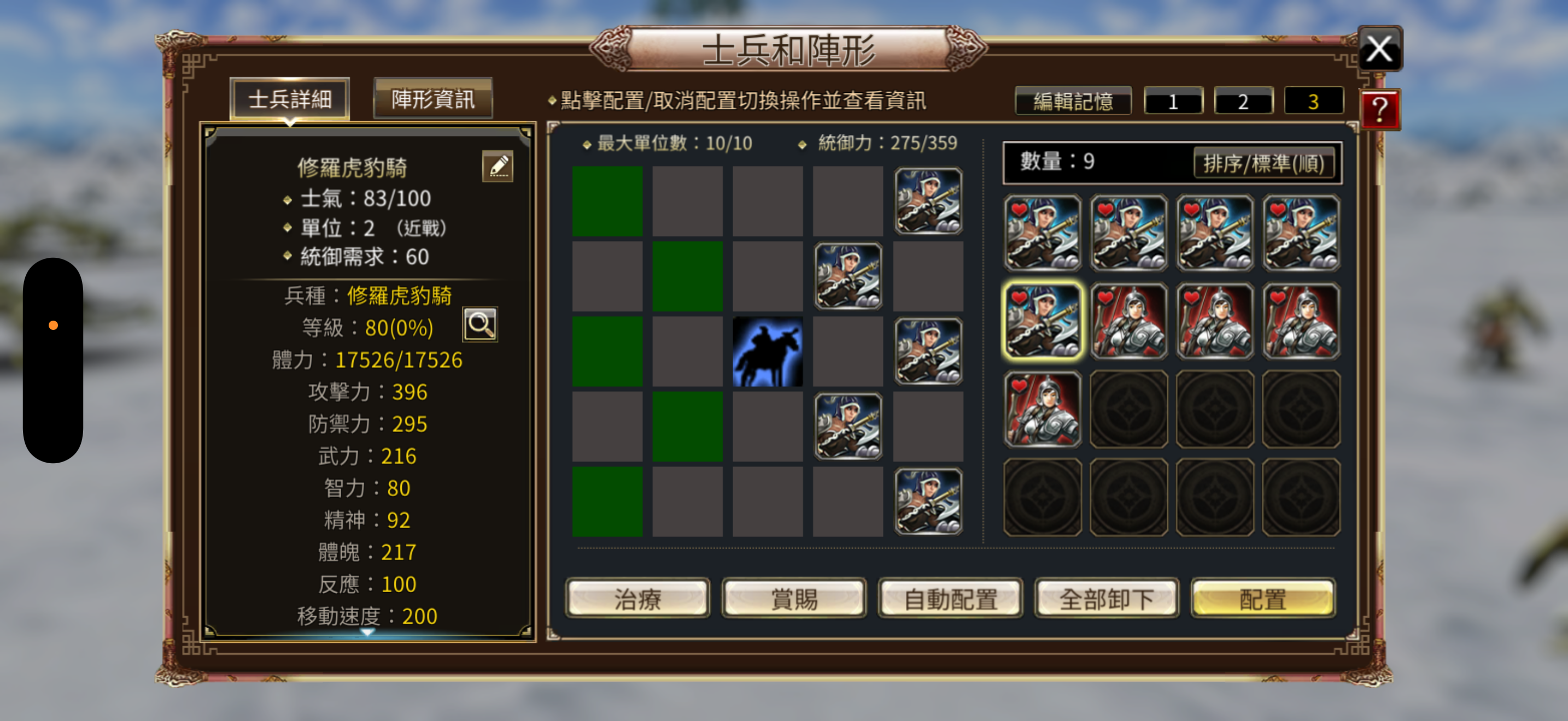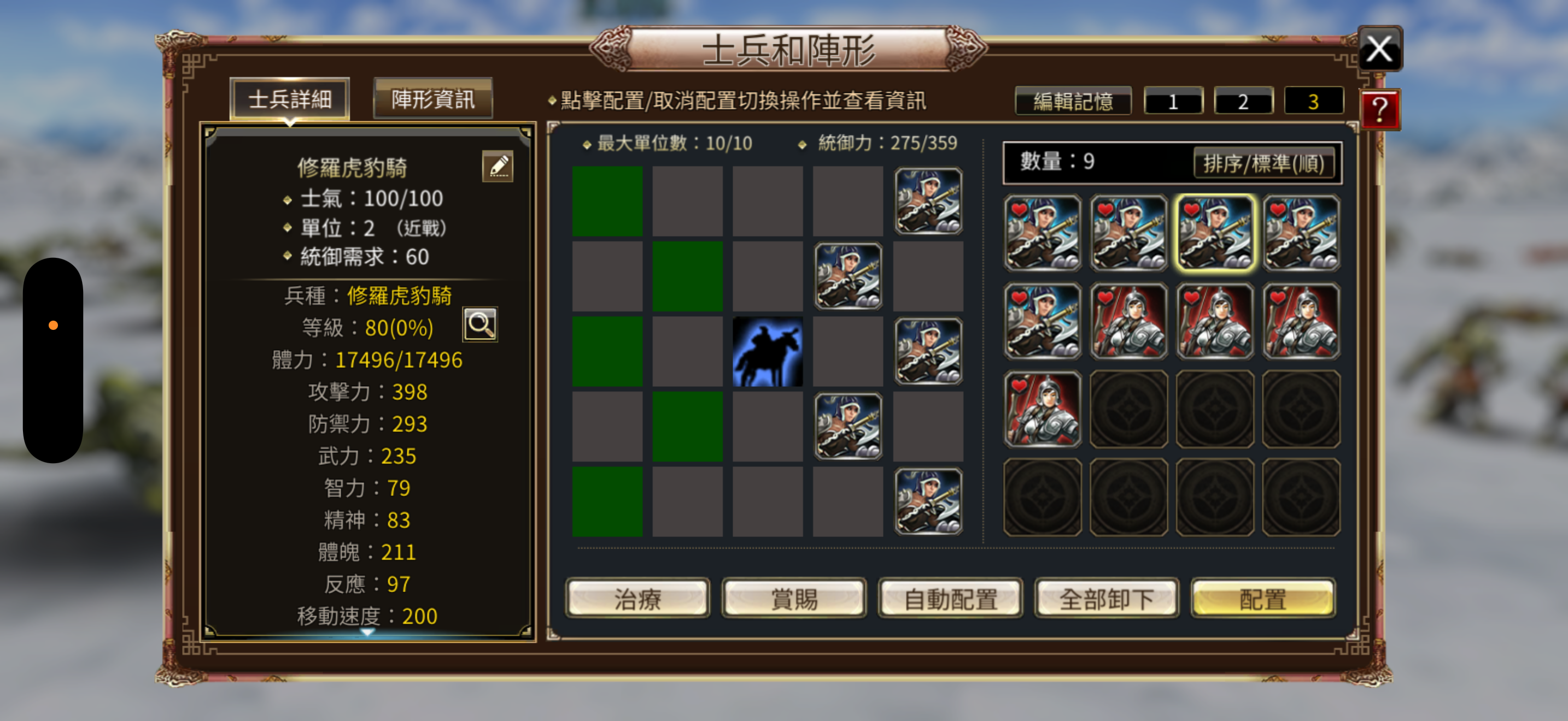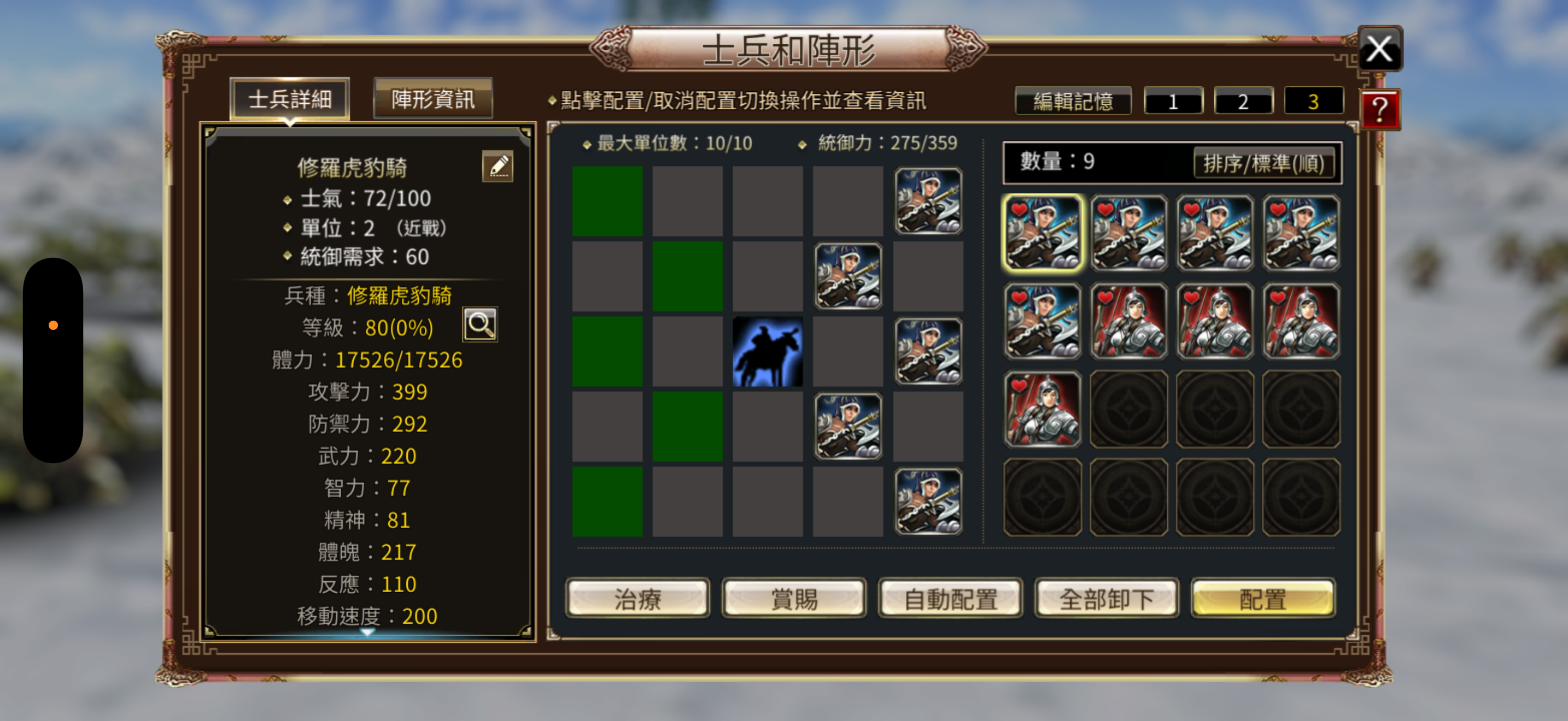 兵種:修羅虎豹5,虎豹5,5張修羅虎豹令,4隻80等修羅神弓