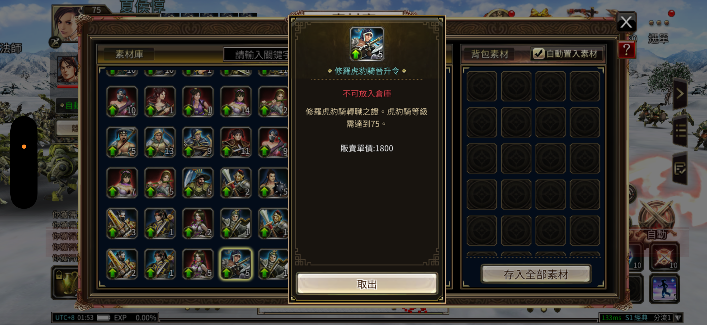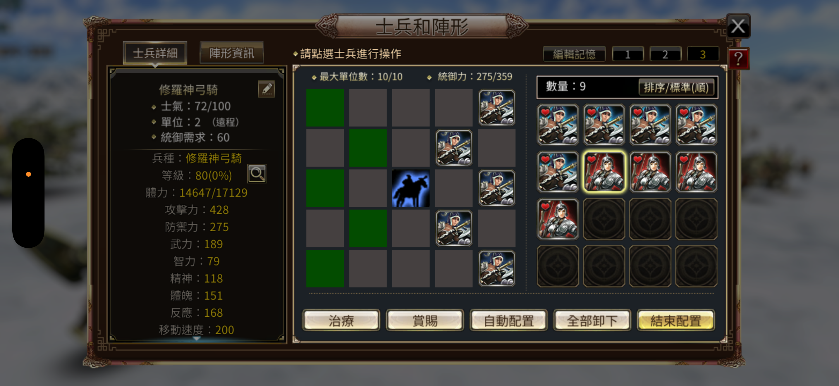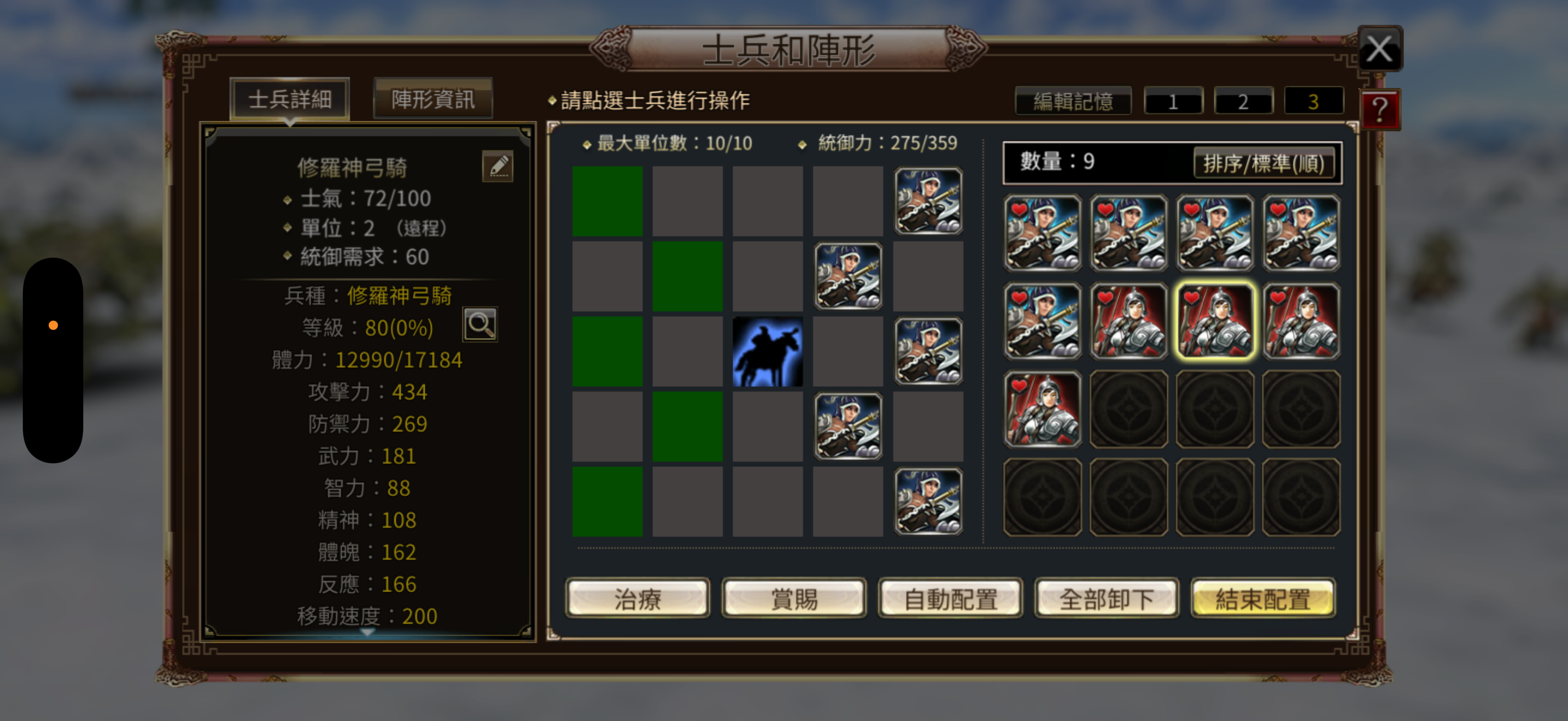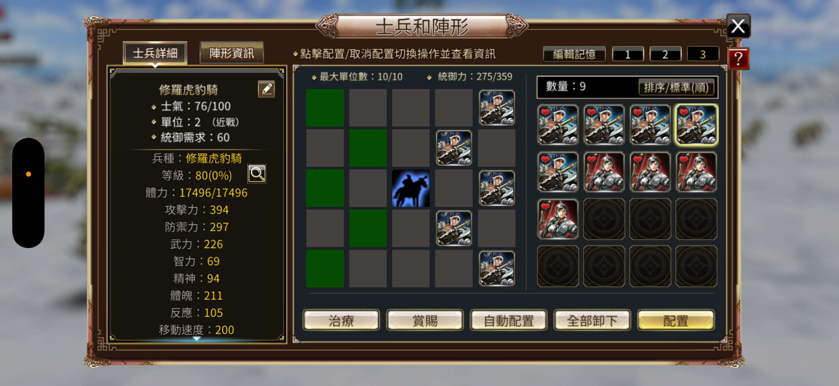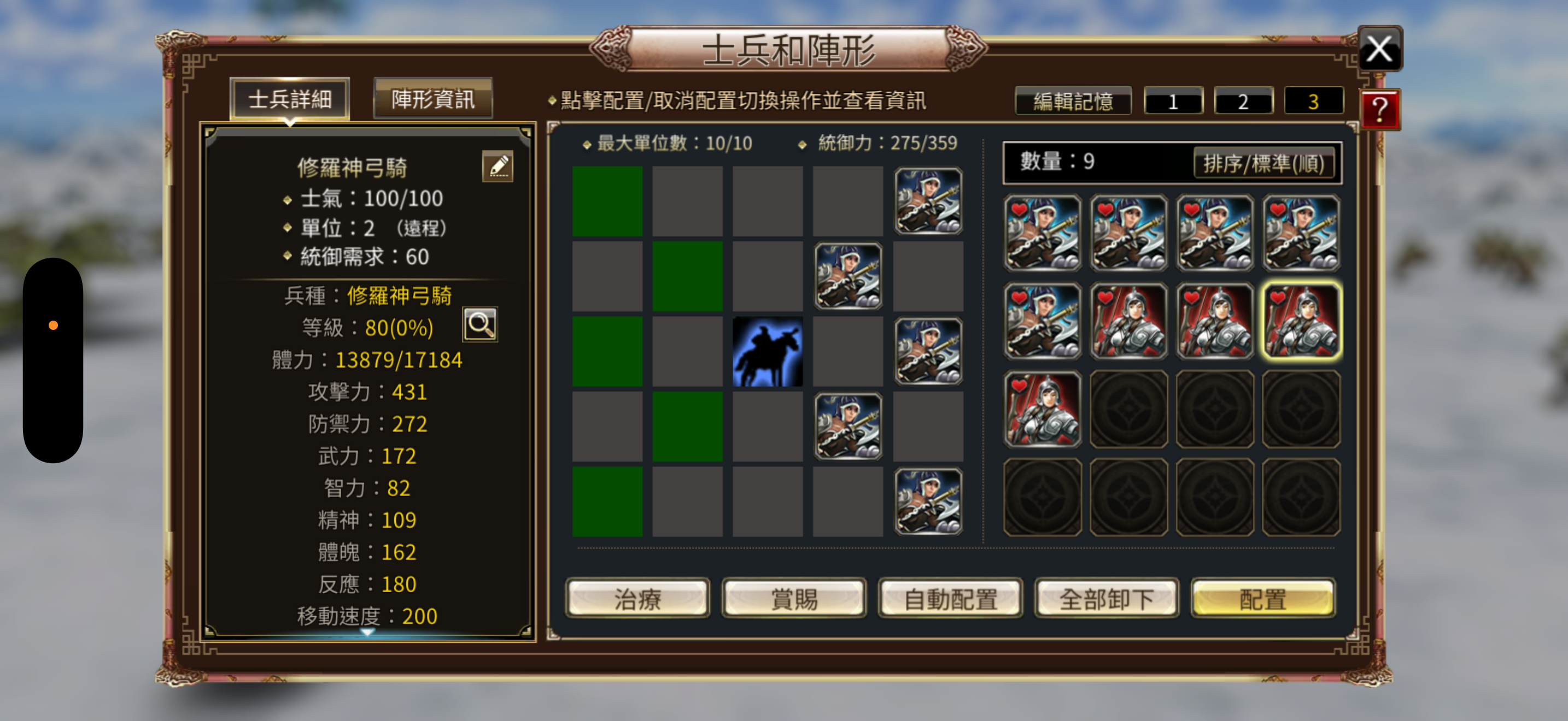 兵種:修羅虎豹5,虎豹5,5張修羅虎豹令,4隻80等修羅神弓