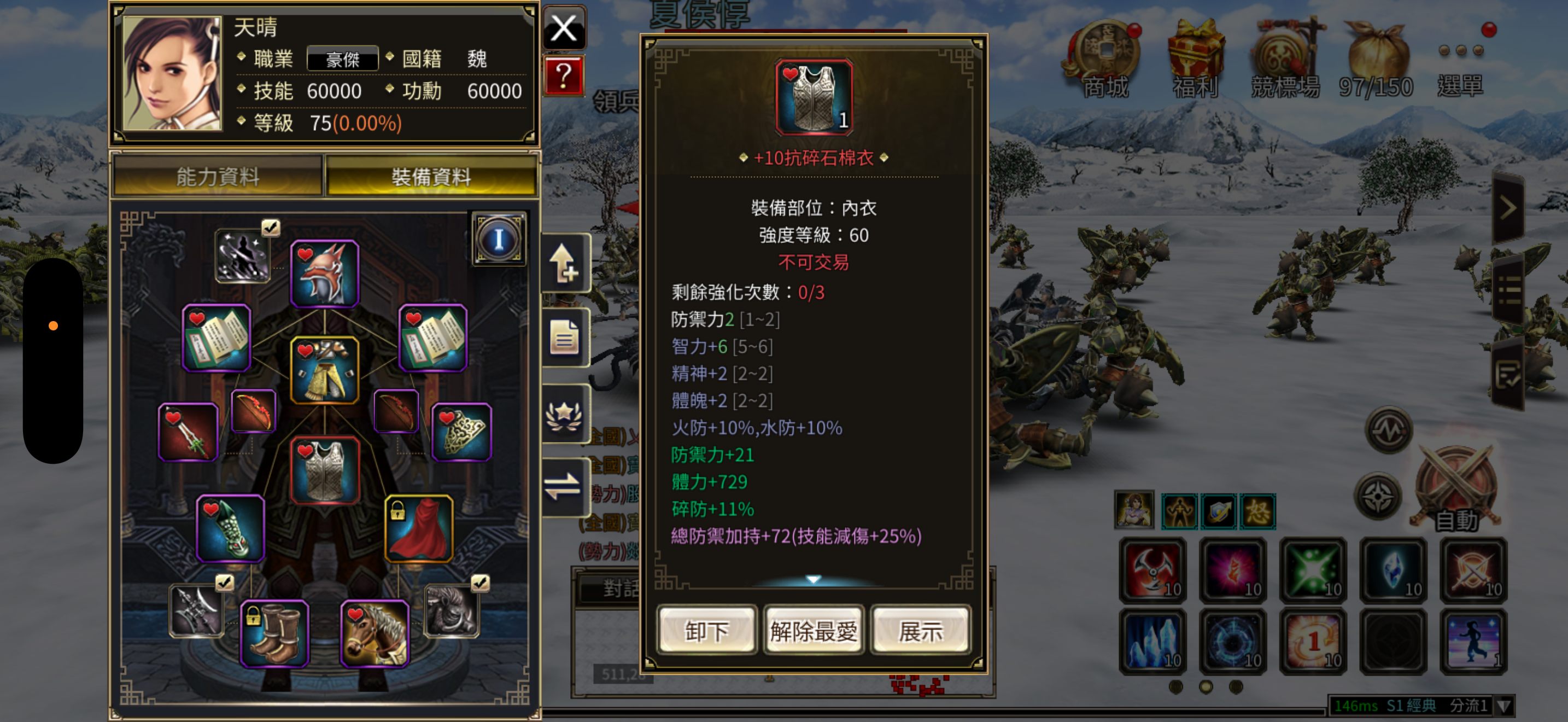 防禦總加持:72擁有武器:+12軒轅劍