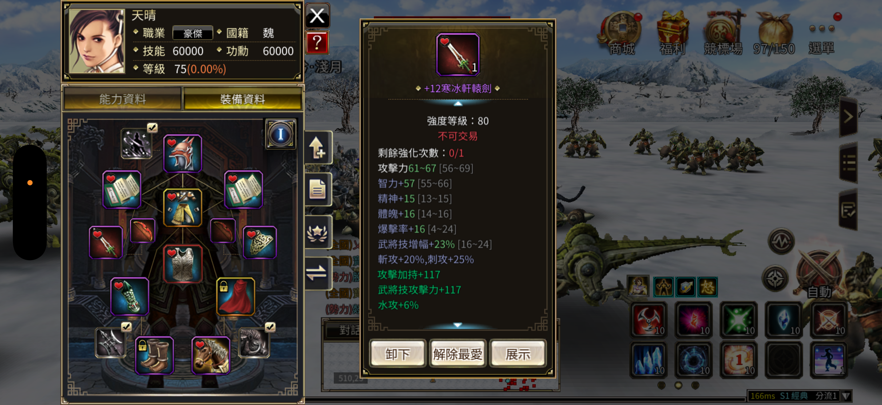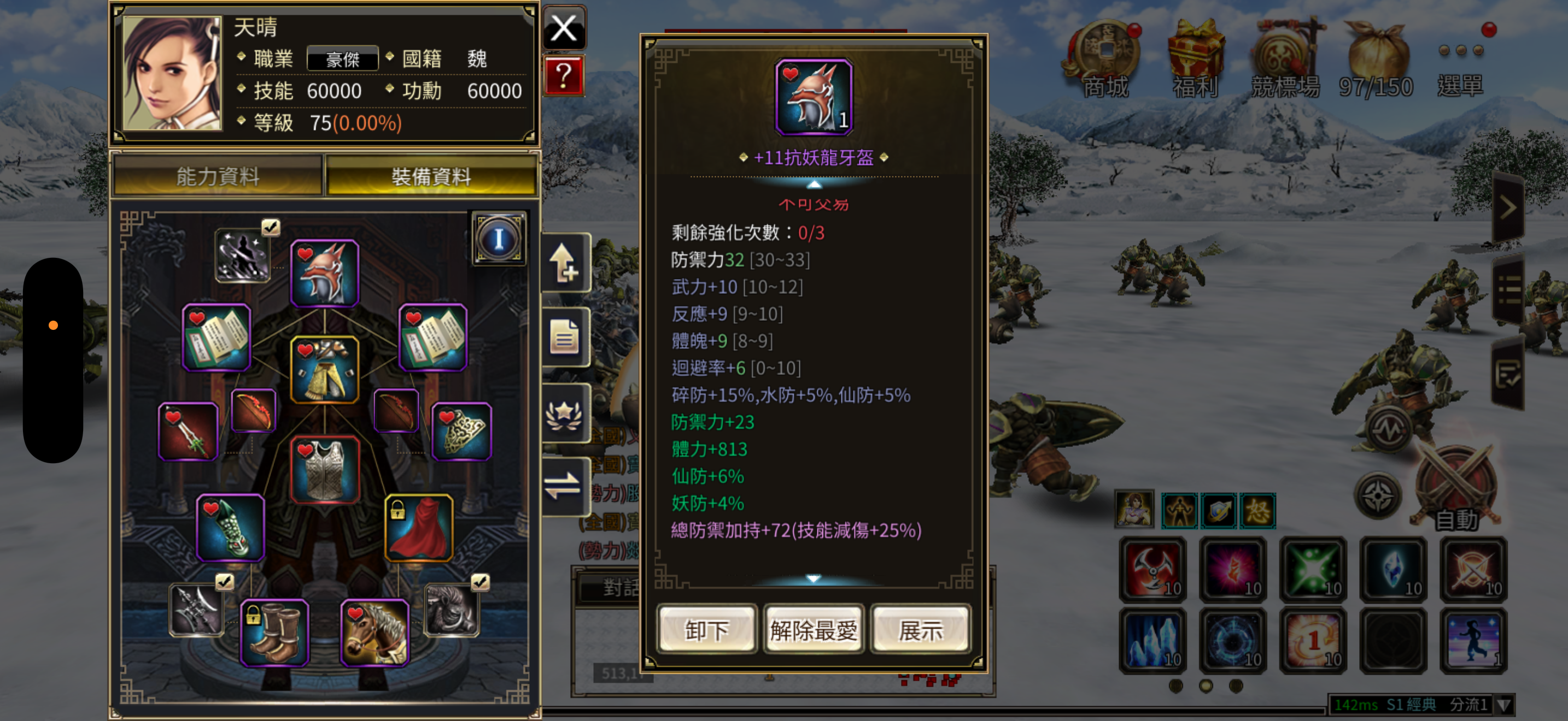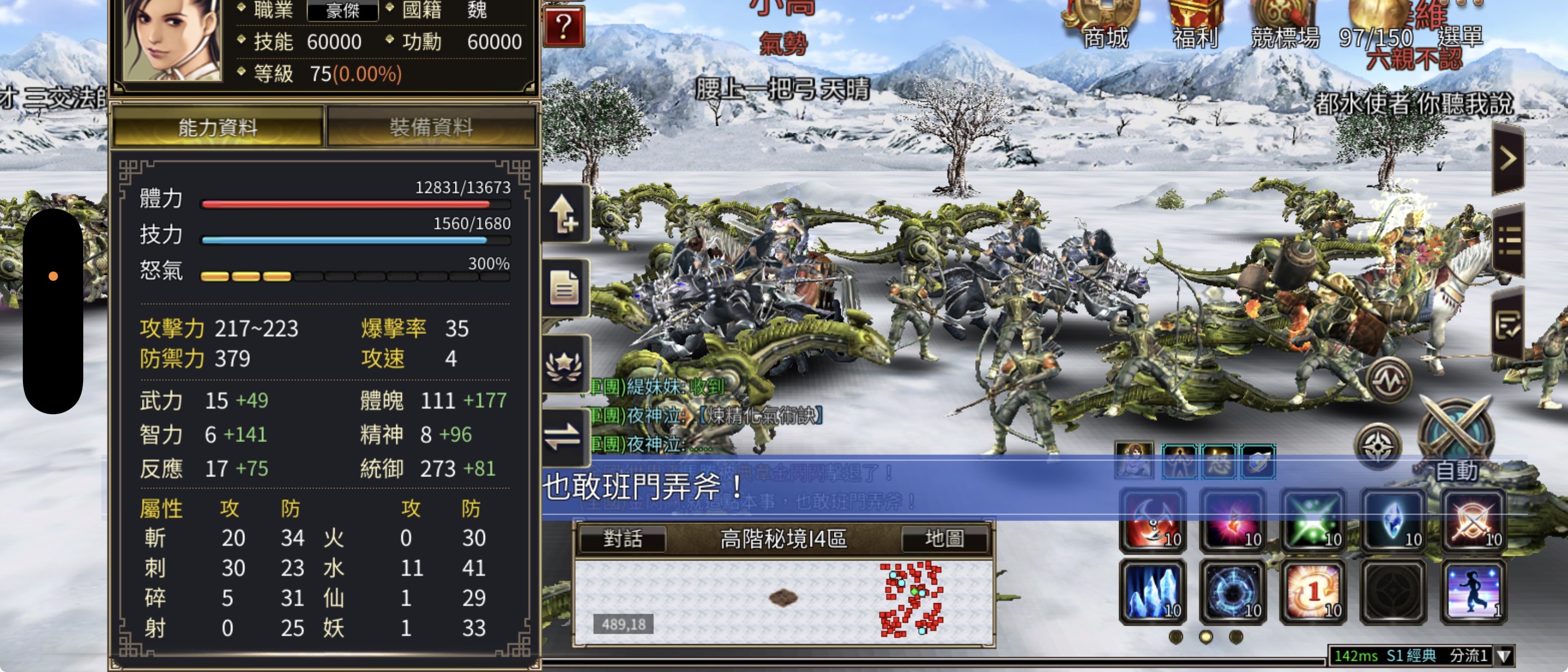 75等,3怒,豪傑 身上還有13984金