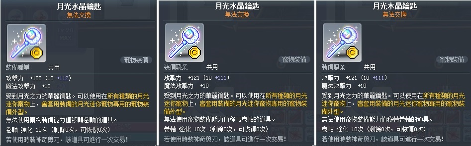 道具 【P寵鑰匙(全服幫轉)】 122攻 + 121攻 + 121攻 3把物攻 月光水晶鑰匙