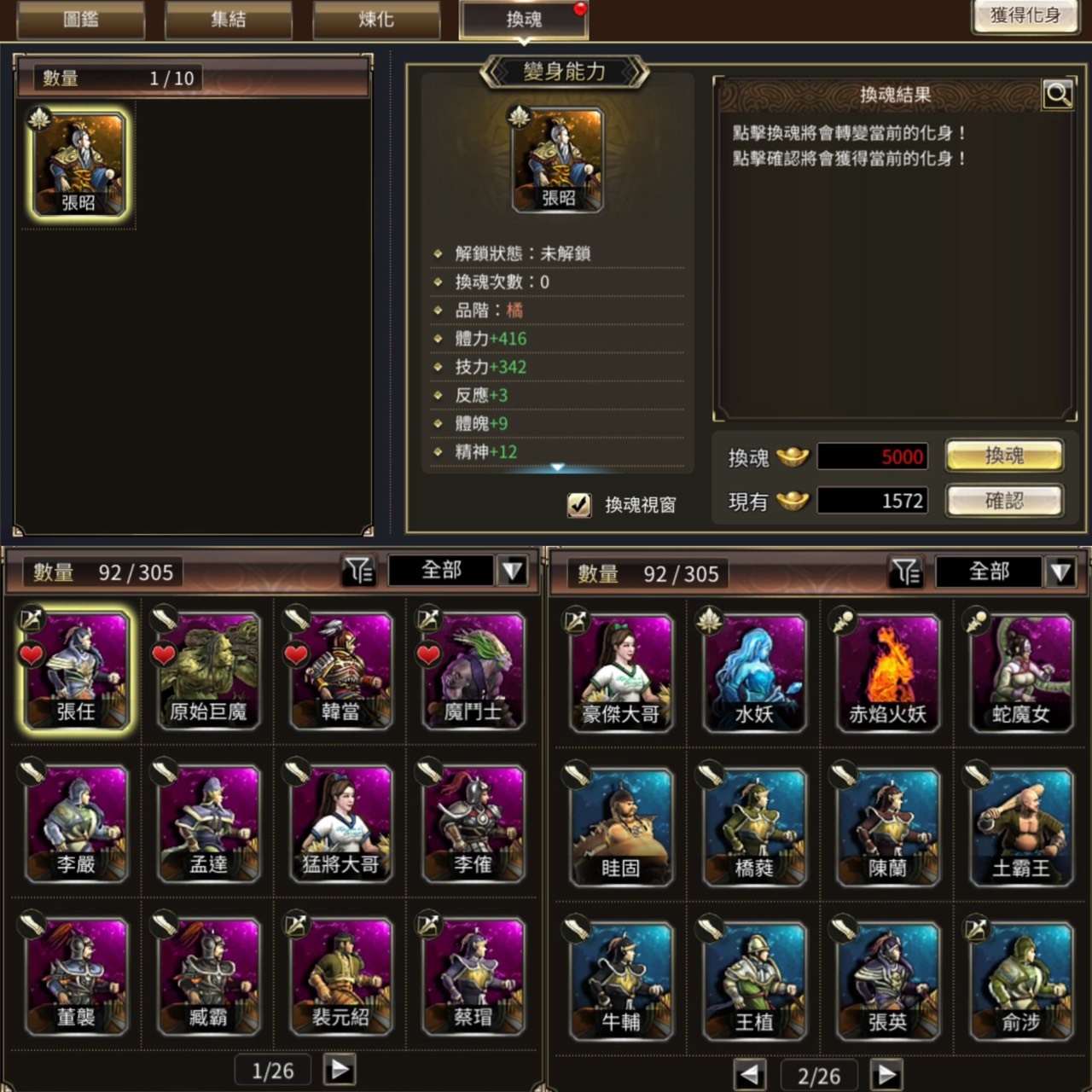16紫 : 韓當(冰箭).魔鬥(連環).張任(冰雹).裴元紹(真空).水妖(強命)