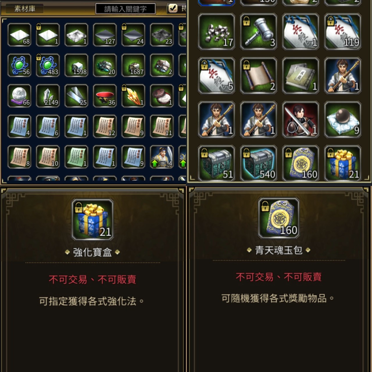 銀元寶 : 9045,金元寶 : 639, 63張自選屬防, 160盒青天魂玉包