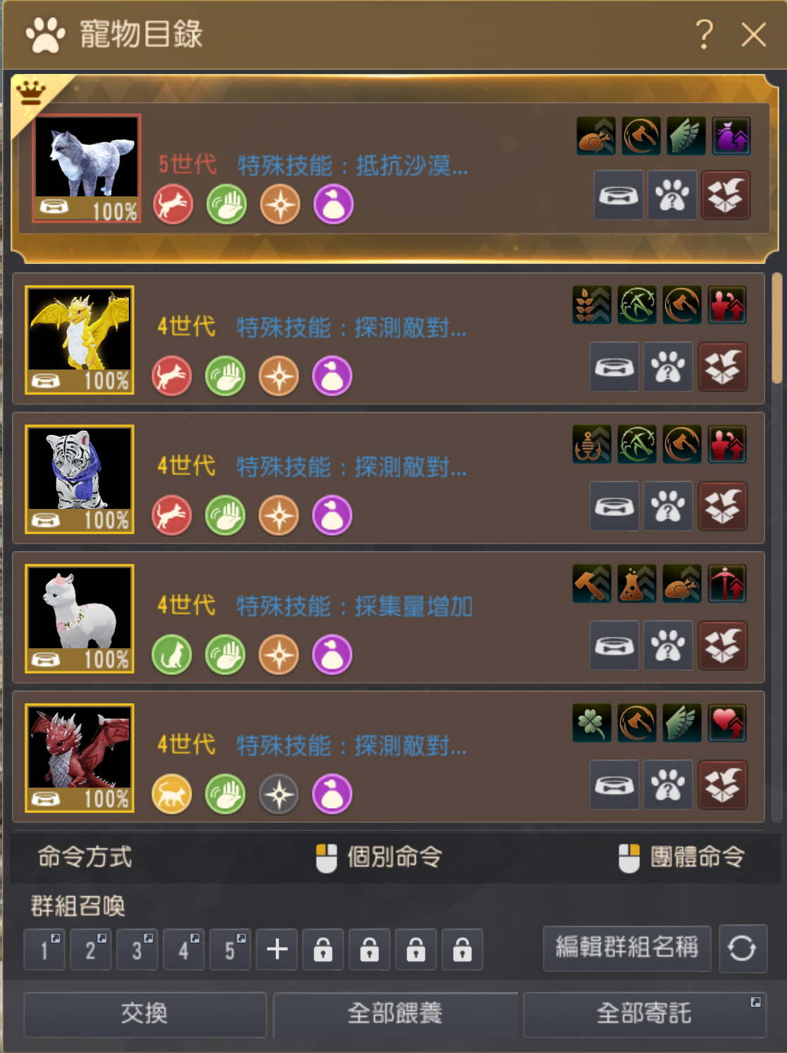 寵物 : 一套死亡減免紅沙寵 一套耐久減免滿四代 總共三隻五代 十五隻四代