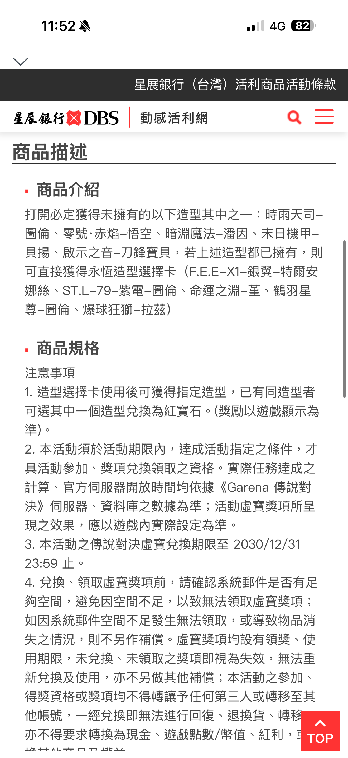 傳說對決永恆造型兌換卡 星展銀行刷卡禮