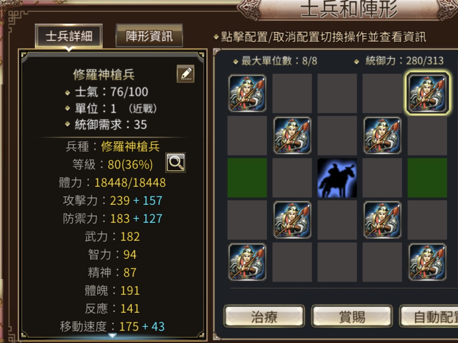 經典75等強命軍 附8隻80等修羅槍兵 技能 近戰 強命 破城 鐵腕 剛體 心眼