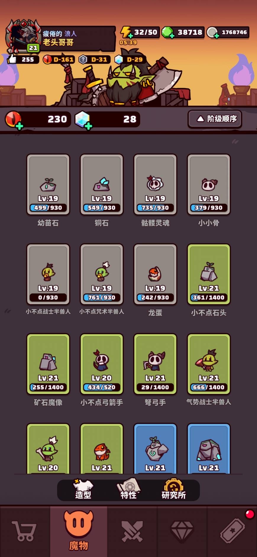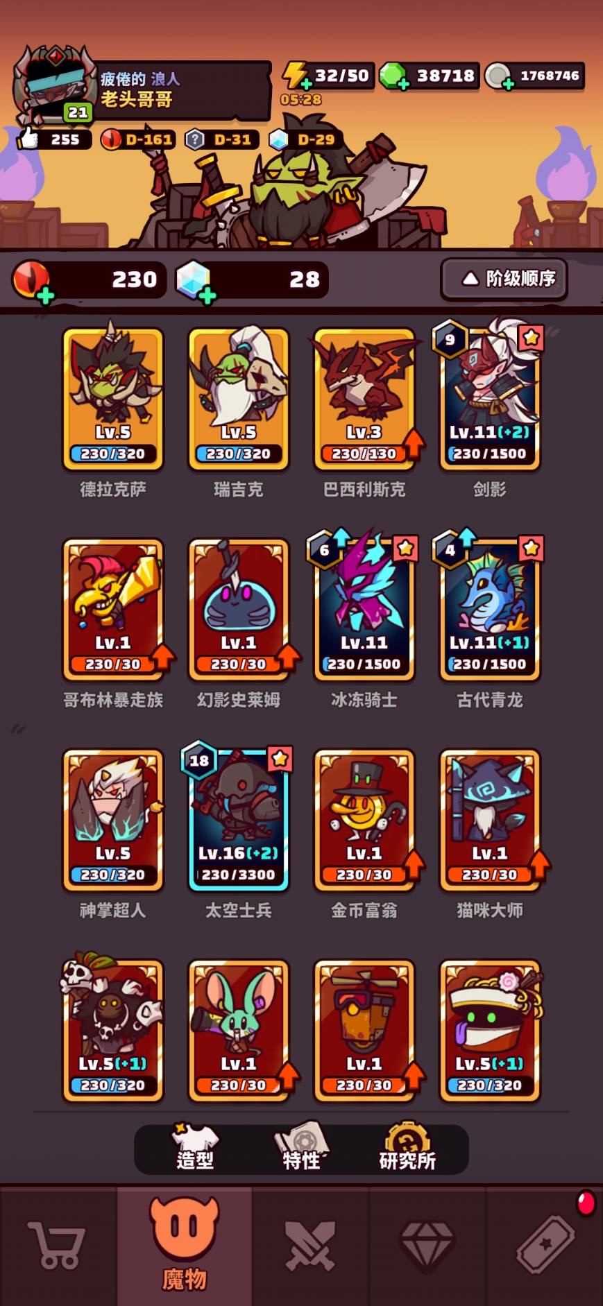 【21等】 太空16/18 冰11/6 龍11/4 劍11/9