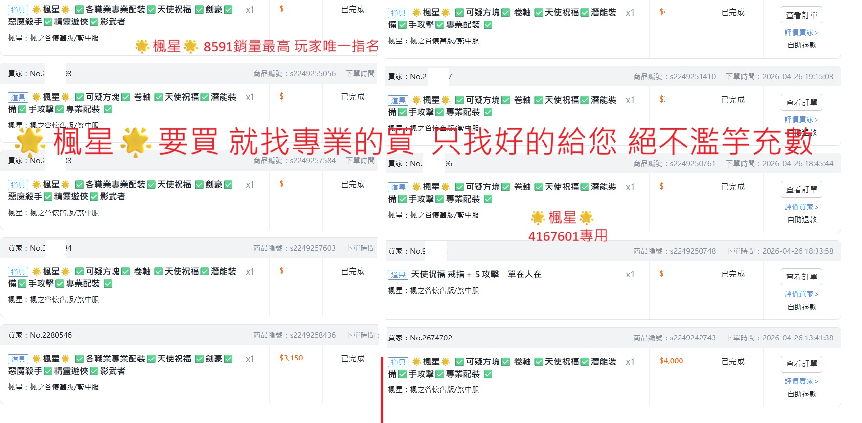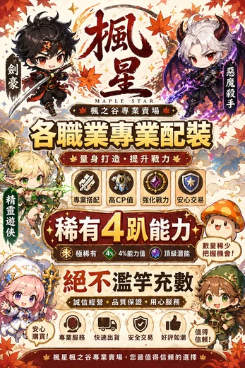 道具 🌟楓星🌟 ✅各職稀有4,6趴裝✅天使祝福✅專業配裝✅手套攻擊✅最新4/30