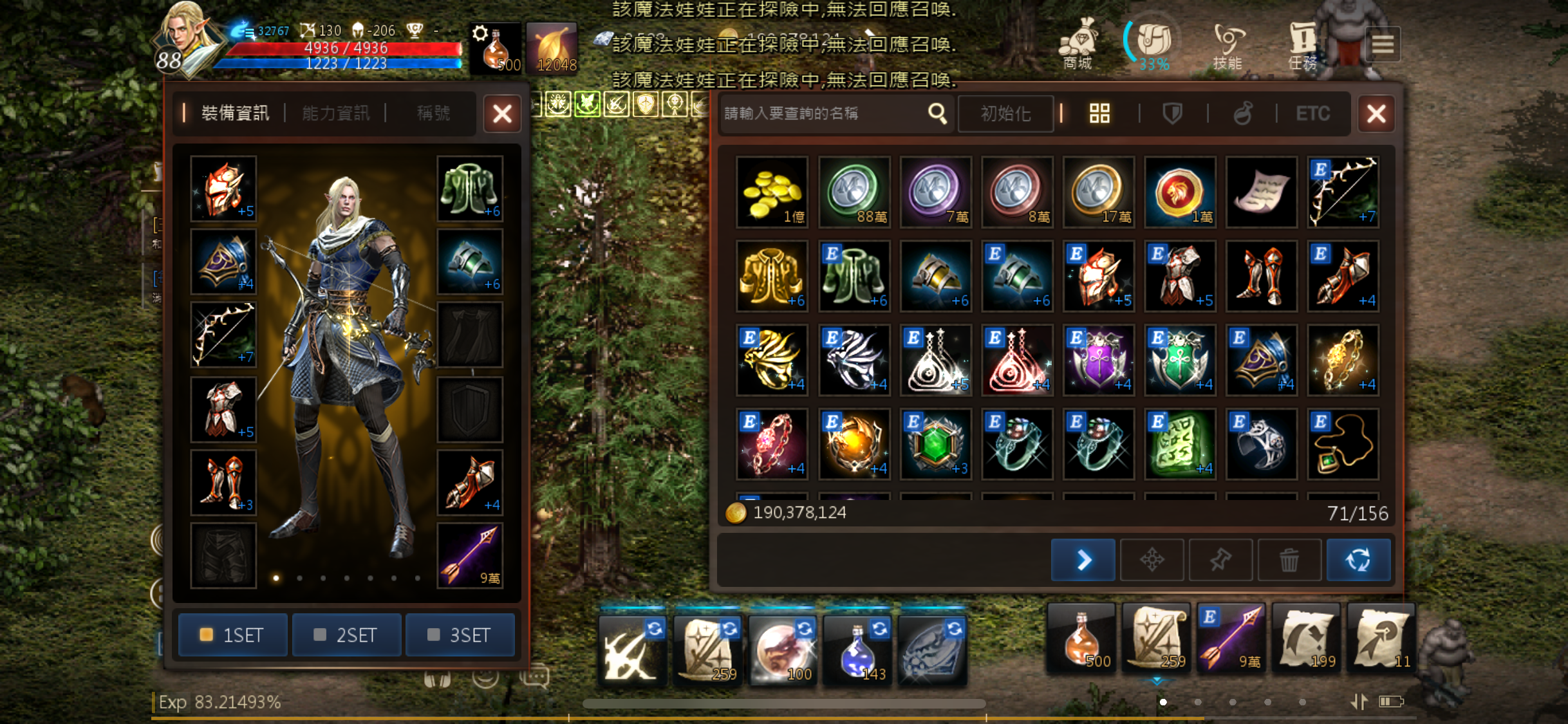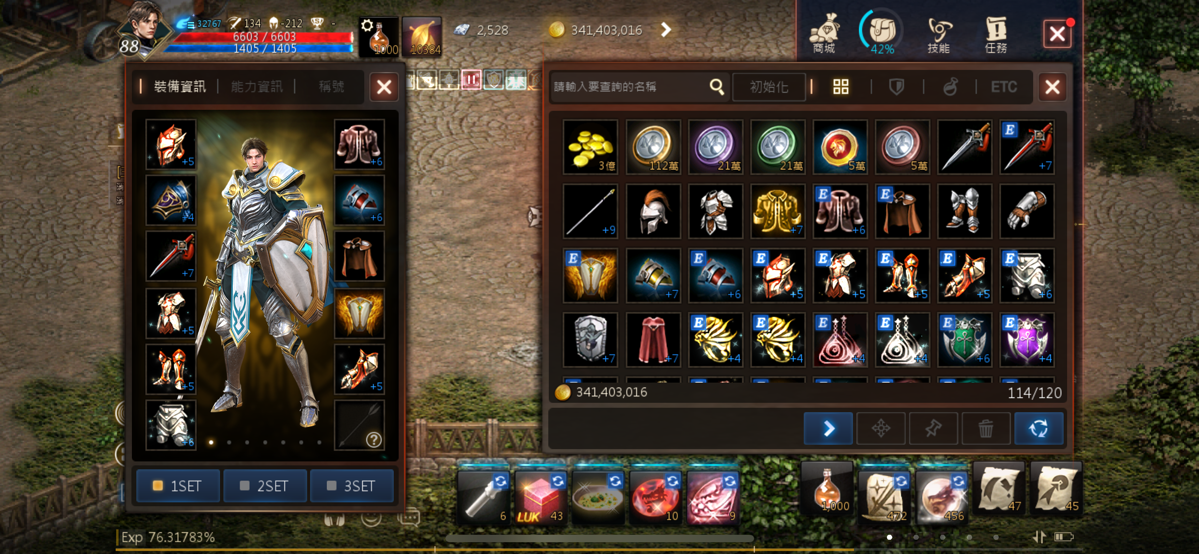 裝備:一般基本金粉可以換的祝福飾品(少數過1)、+7刻印紅弓、+5紅騎士祝福全套(祝福都有上減傷)、大量材料、內附2000鑽以上不會清走,不一定是照片那個數字。