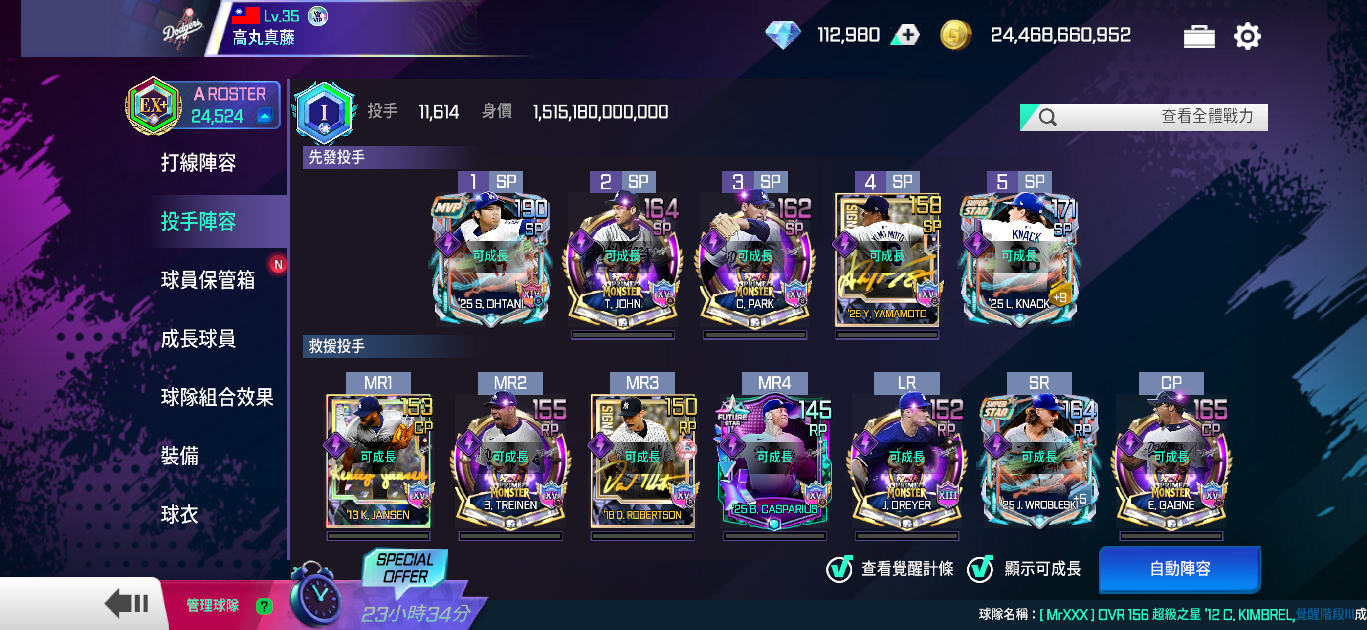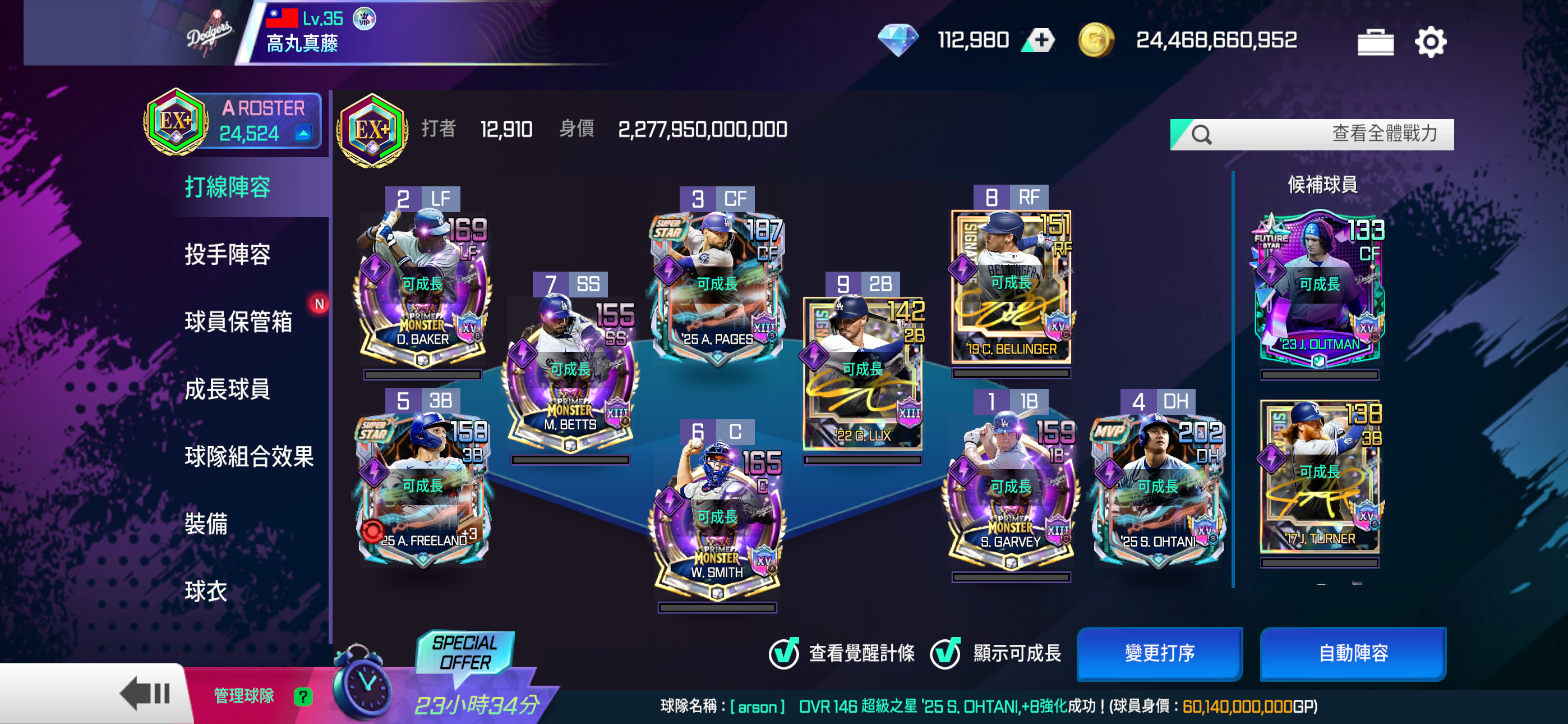 【35等】 純道奇2萬4千多戰力 超級之星大谷投打 月卡還有20天