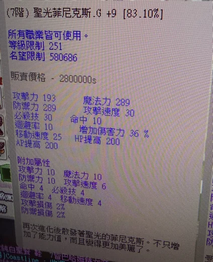 聖光菲尼G+9小官屬內詳(純白聖賢,冰魔,新手回鍋,高魔力,三尾)