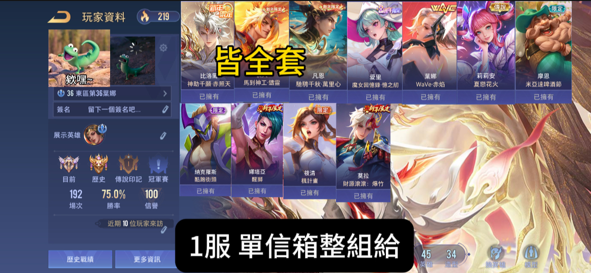 【Garena帳有綁定、星耀、V2、45英、34造】 比洛 夜叉 凡恩新年 愛里魔女 葉娜女團