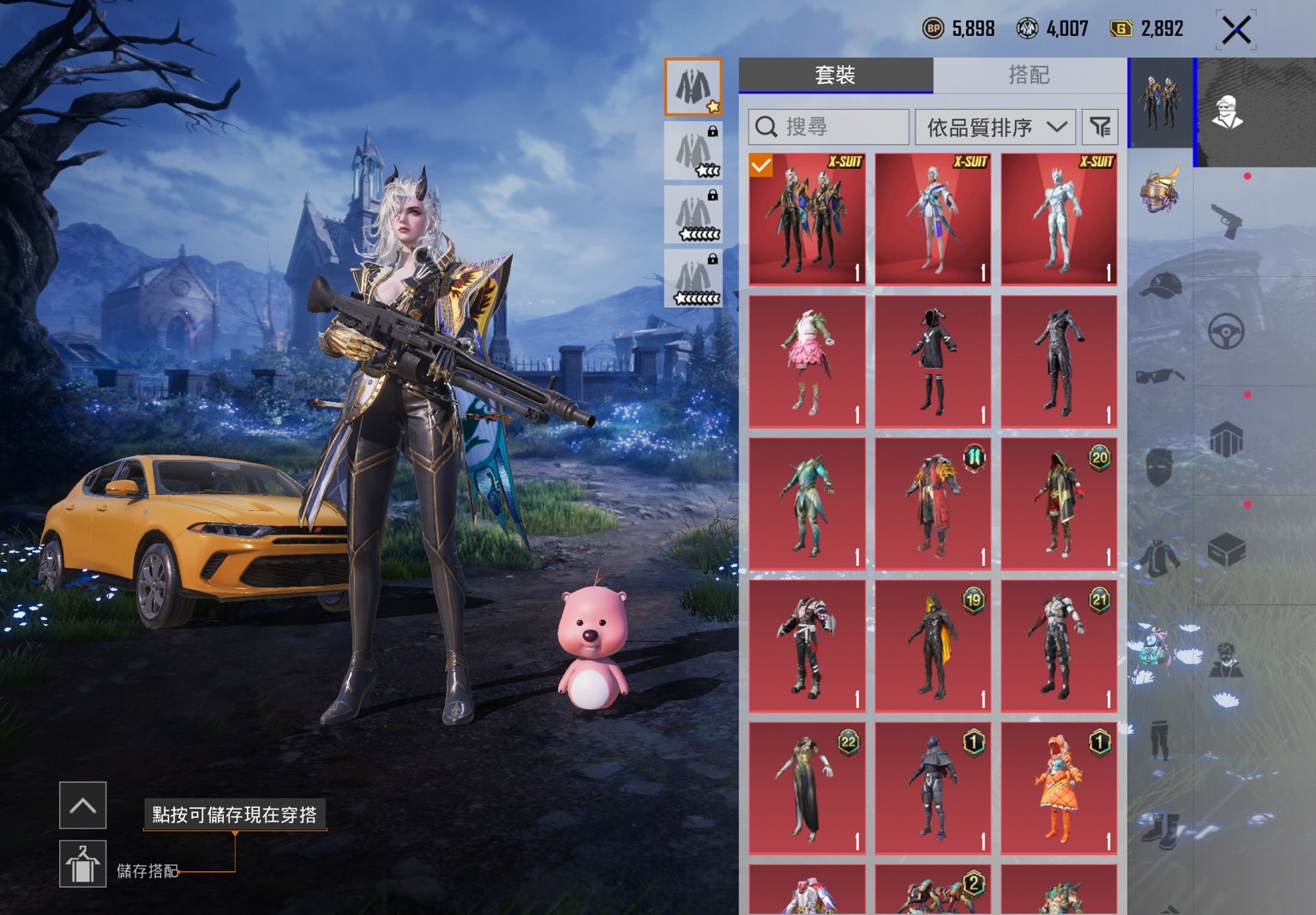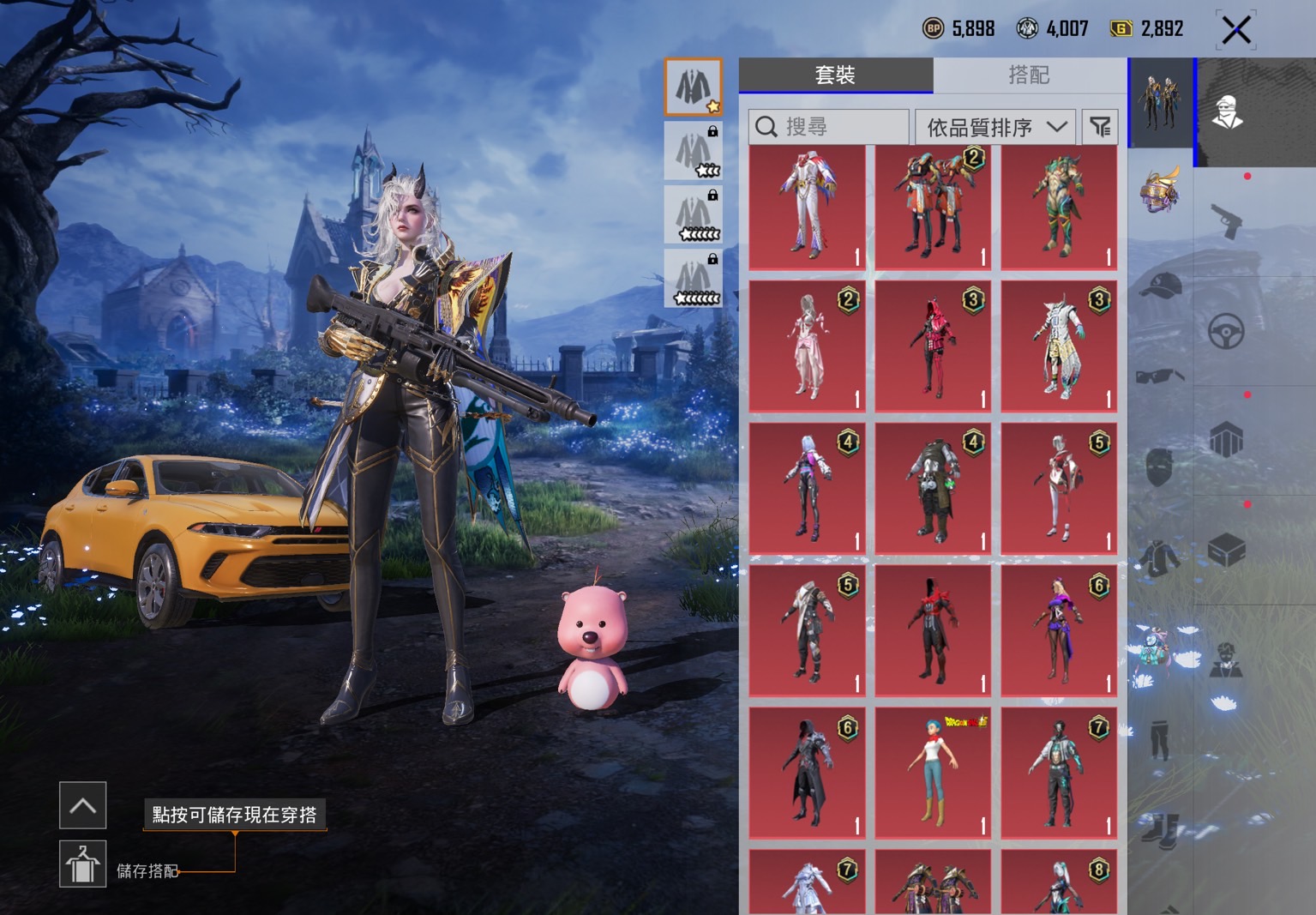 【67等】 3套盛裝、沙影神國AKM(4級)、罪惡玫瑰AUG(3級)