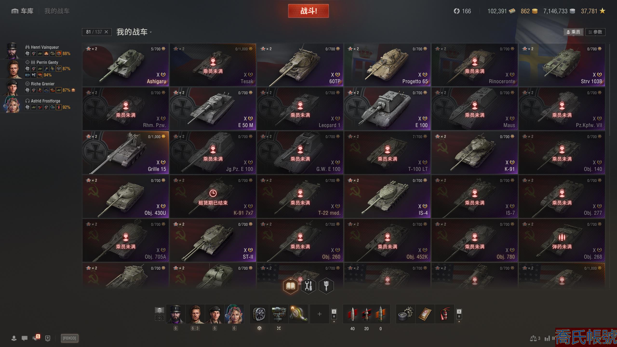 帳號 10級全齊 特種X差一個07主戰,8金20+11級差三個也齊 債券10W 詳情