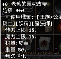 【老舊的靈魂腰帶】 血魔各+15~個職業皆可穿戴