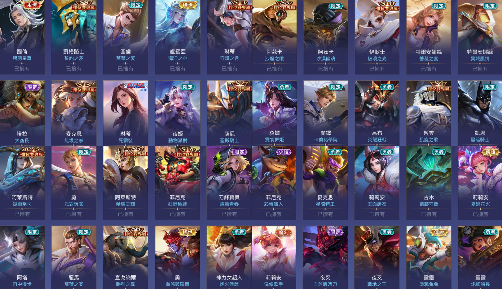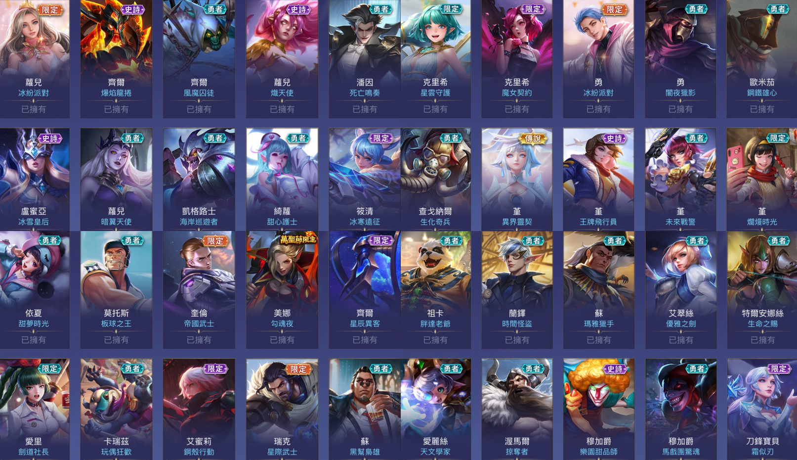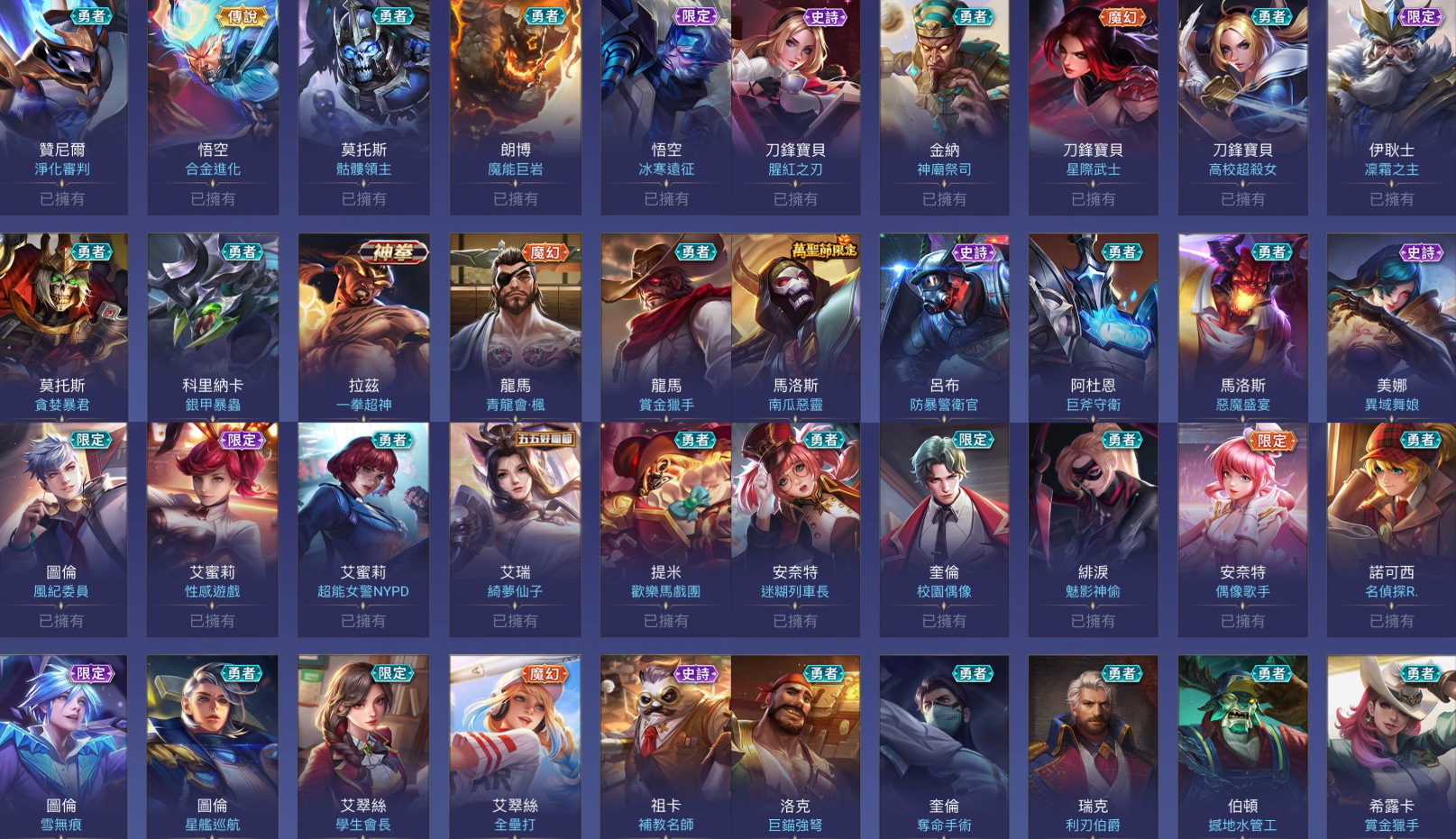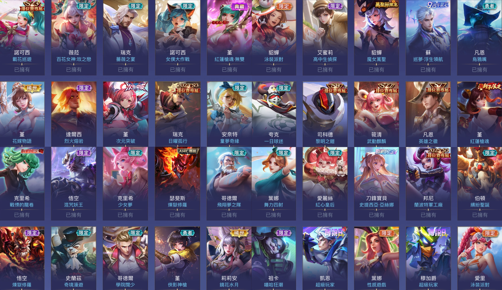 英雄127隻(只缺夏洛特),全英雄需花超過200萬金幣