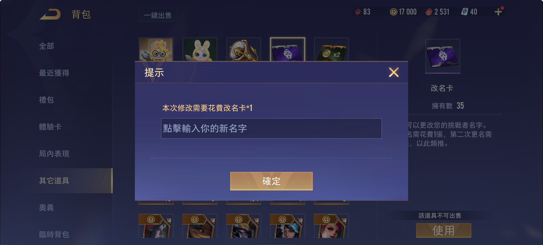 ✨改名卡 : 35張 ( 可連續改名七次 )