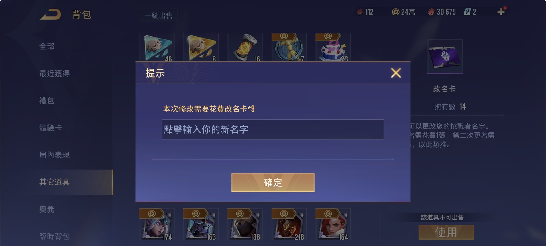 ✨改名卡 : 14張 ( 夠改名 )