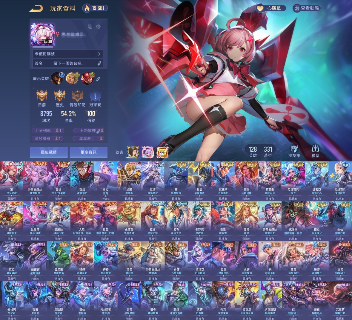 全英雄128隻,全英雄需花超過200萬金幣