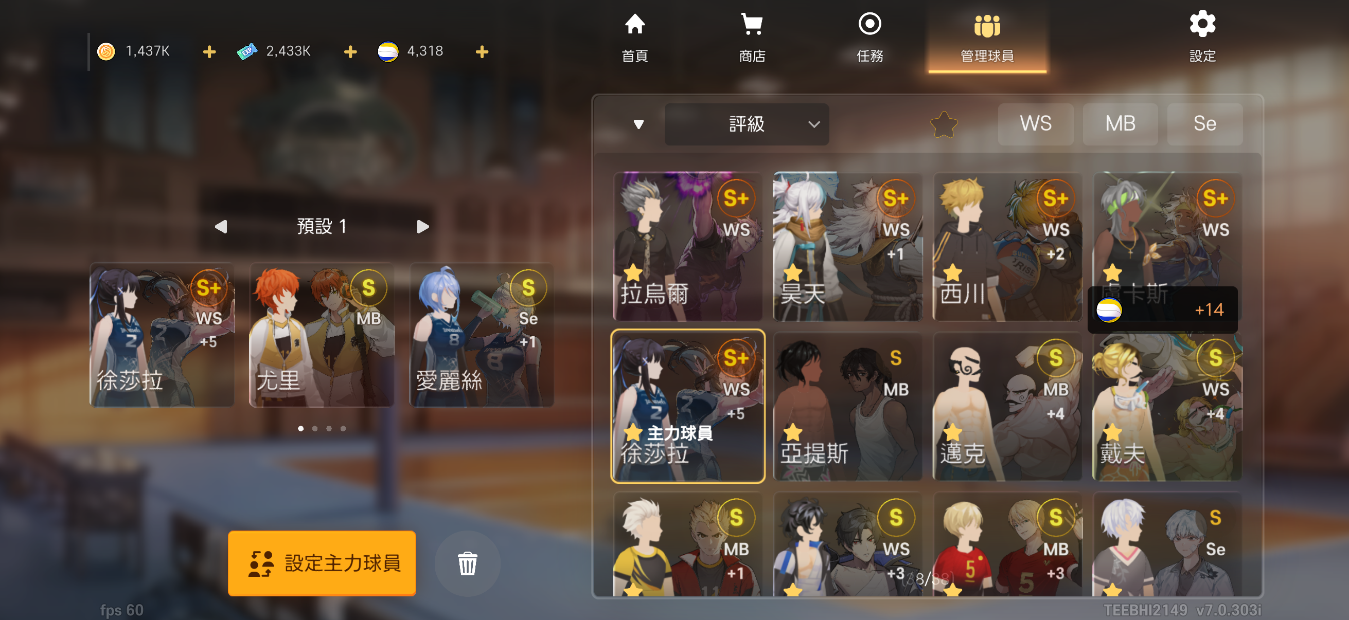 【99等】 全S+、多角色多造型(S+莎拉滿突)黃券324、排球四千多個、私訊價格可議