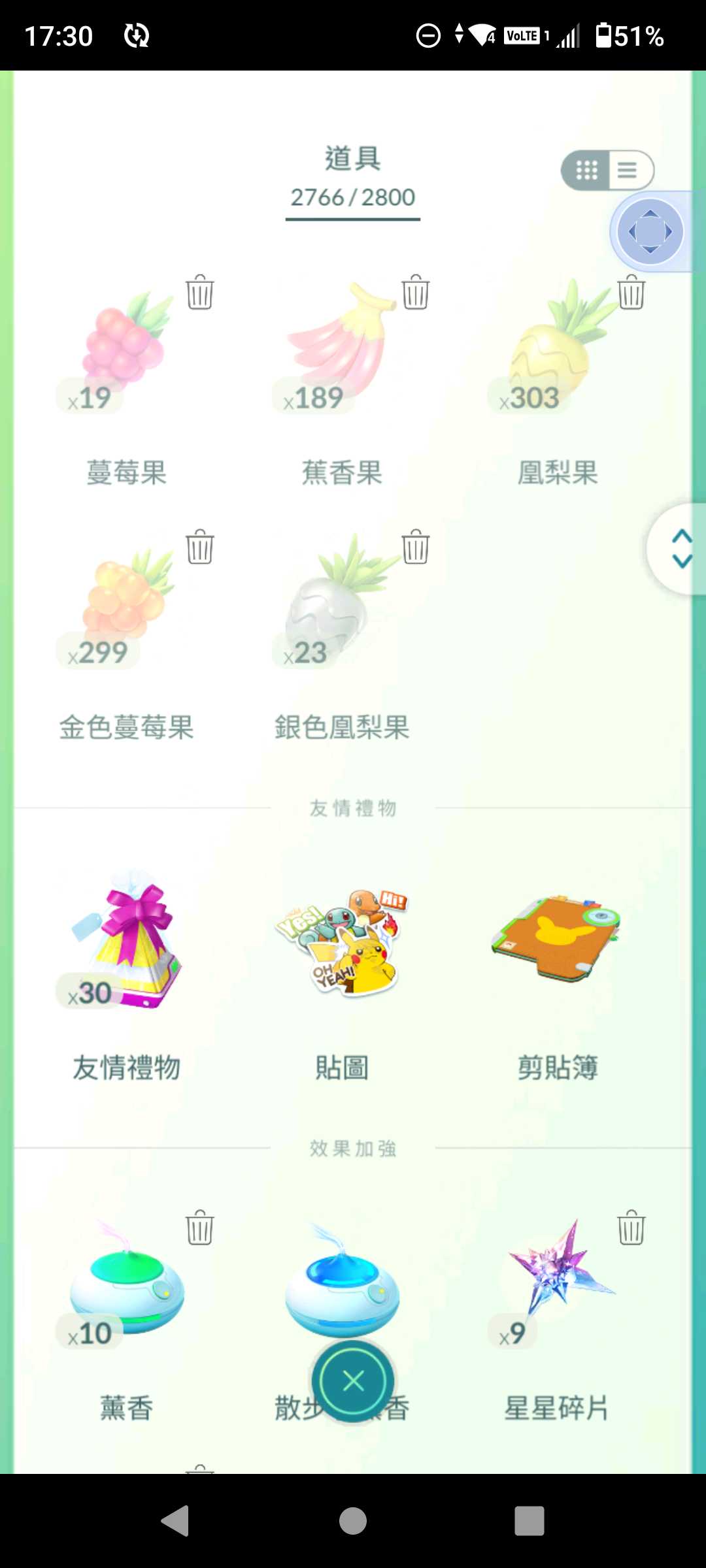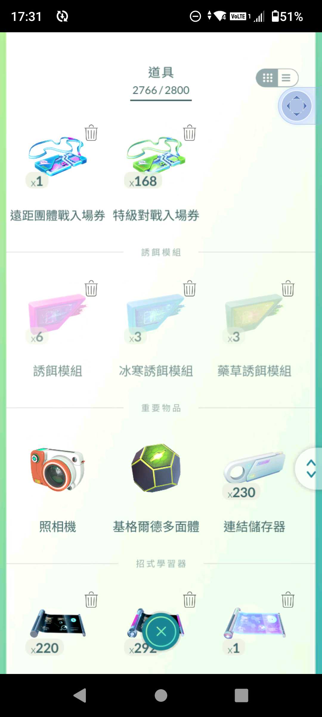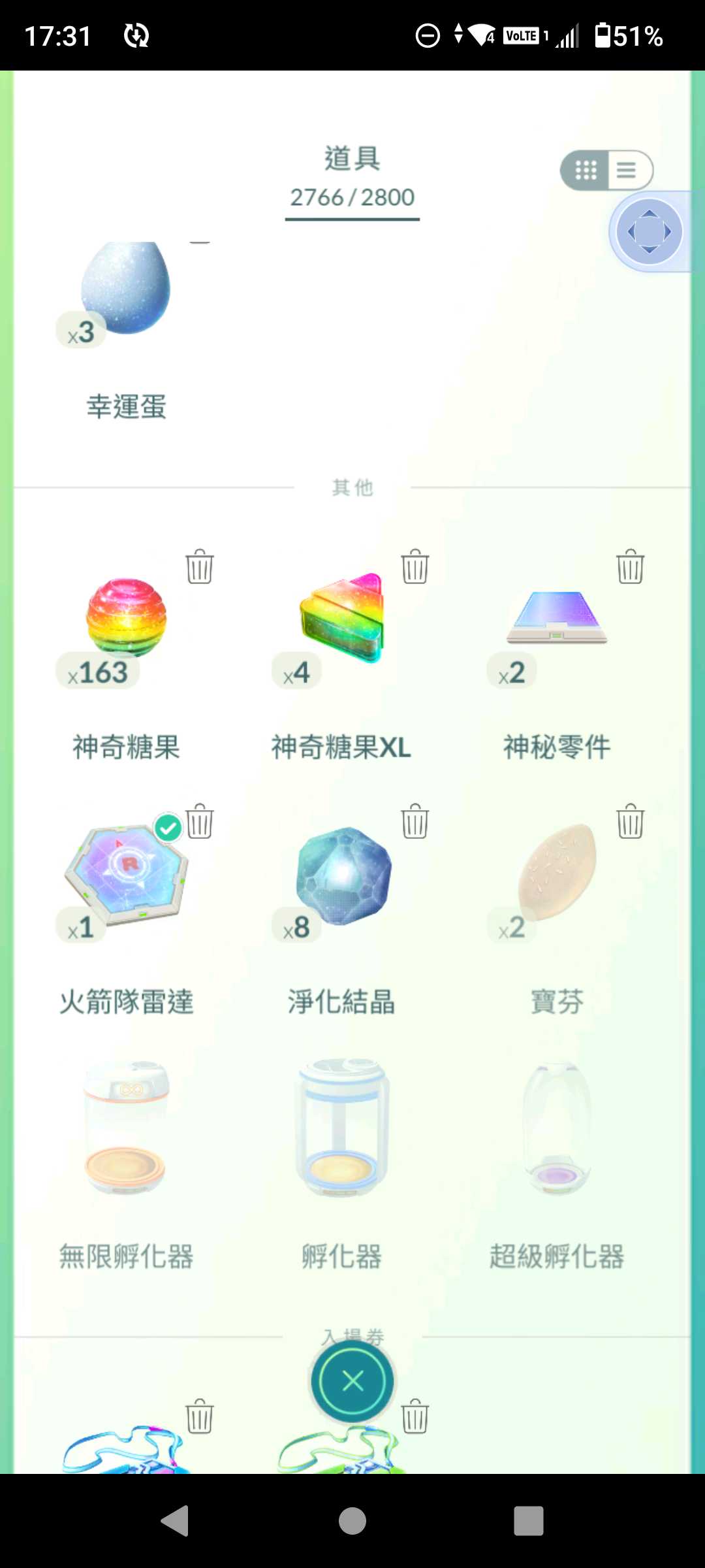背包:大師球×1、內附168綠券、還有一些糖果和學習器