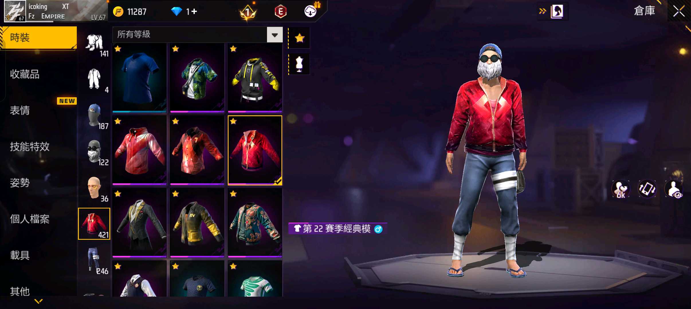【68等】 FREE FIRE9碼老帳號,多賽季衣多聯名多進化武器衣好搭