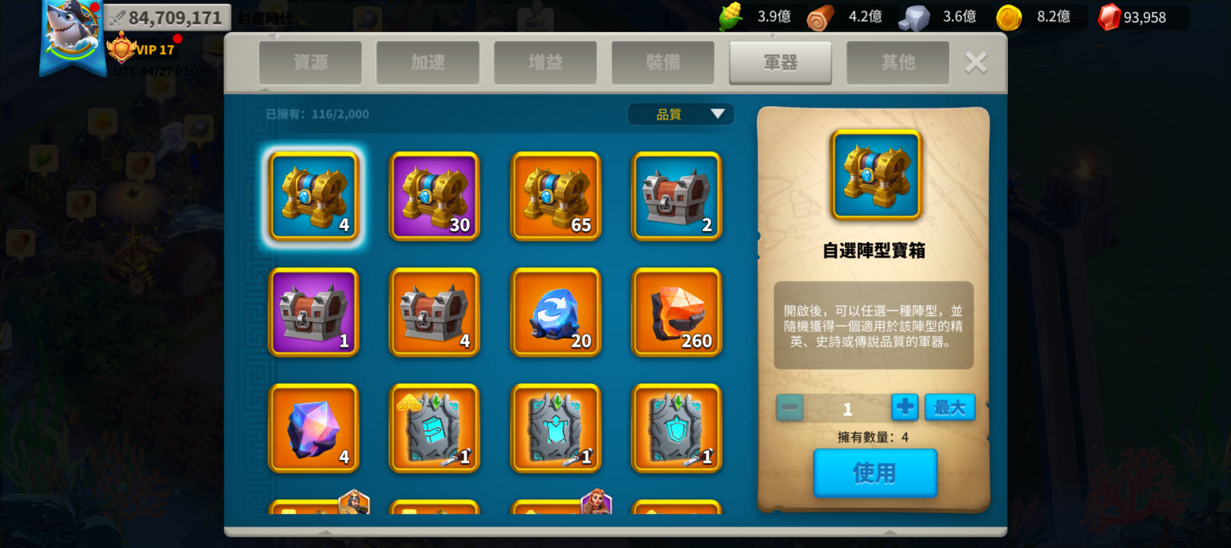 【17等】 v17 8000萬野戰弓兵號
