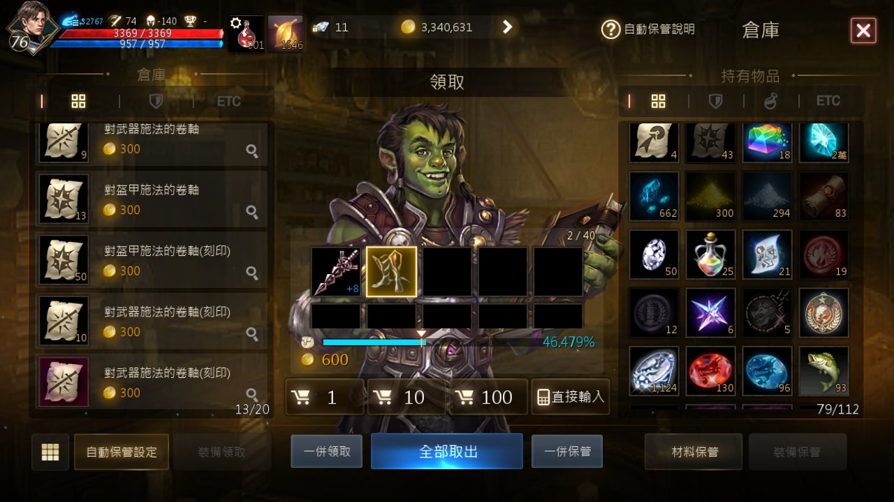 倉庫有刻印+8毀滅巨劍、+0五官靴