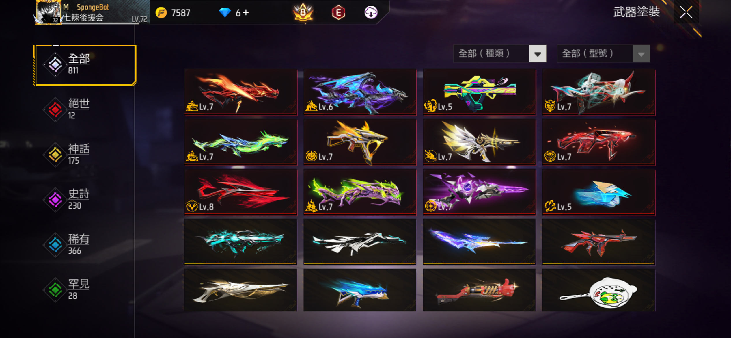 【72等】 武器帳刺客狙700衣800武