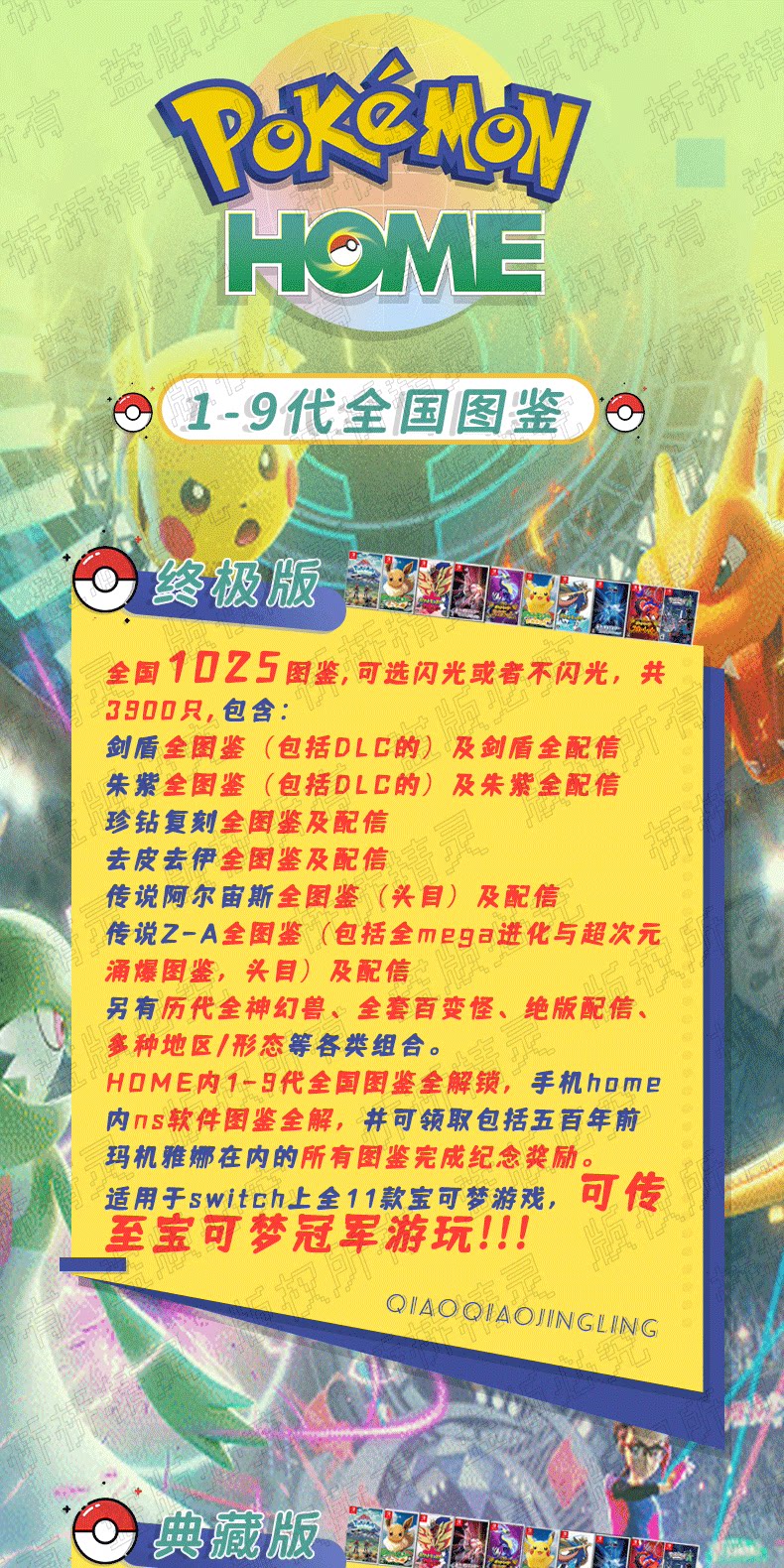 全 8591 首家 寶可夢朱紫ZA全圖鑑 pokemon home全精靈劍盾阿爾宙斯6V閃神獸定制 Pokémon HOME