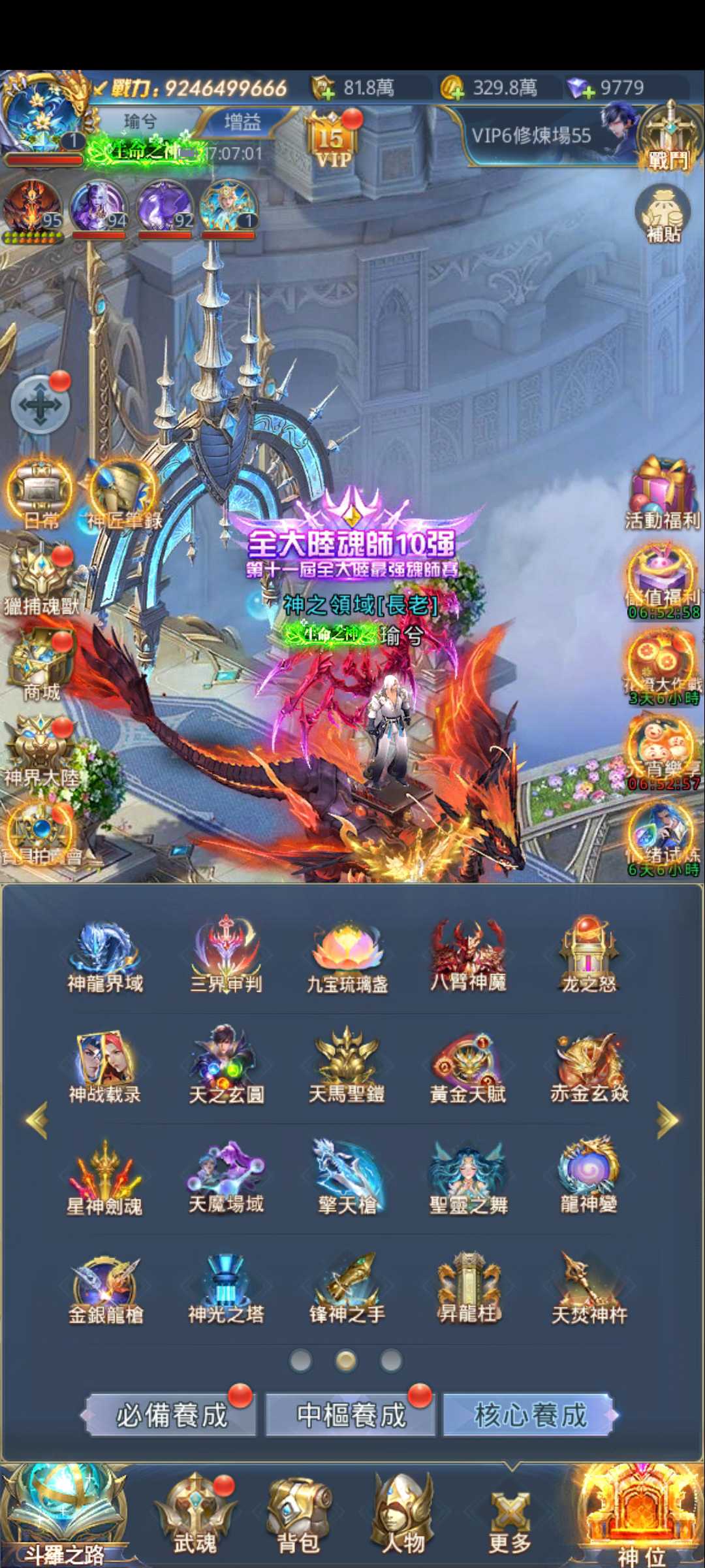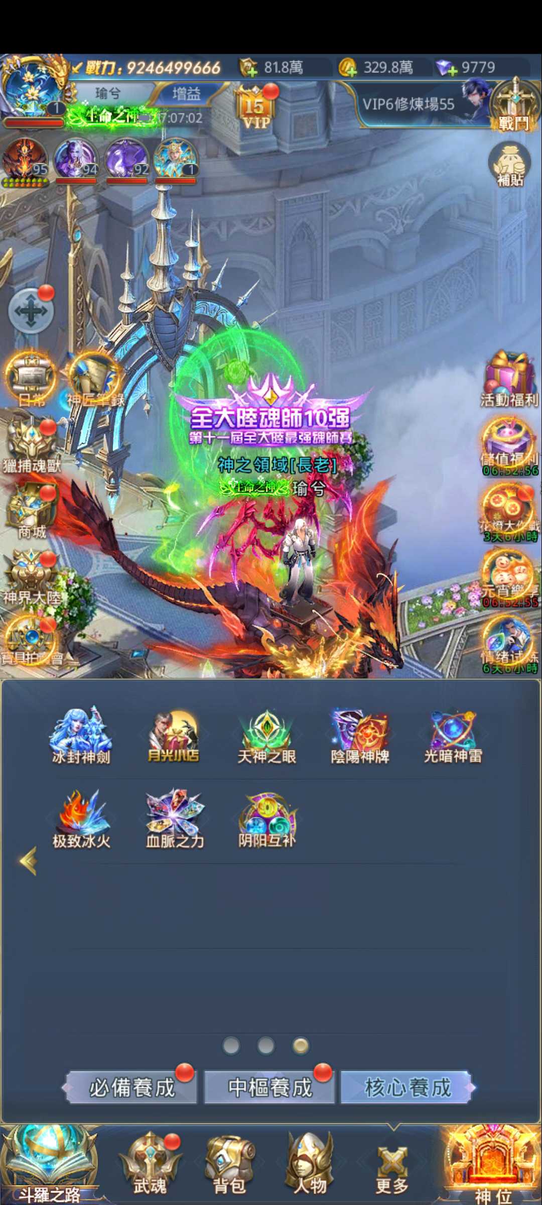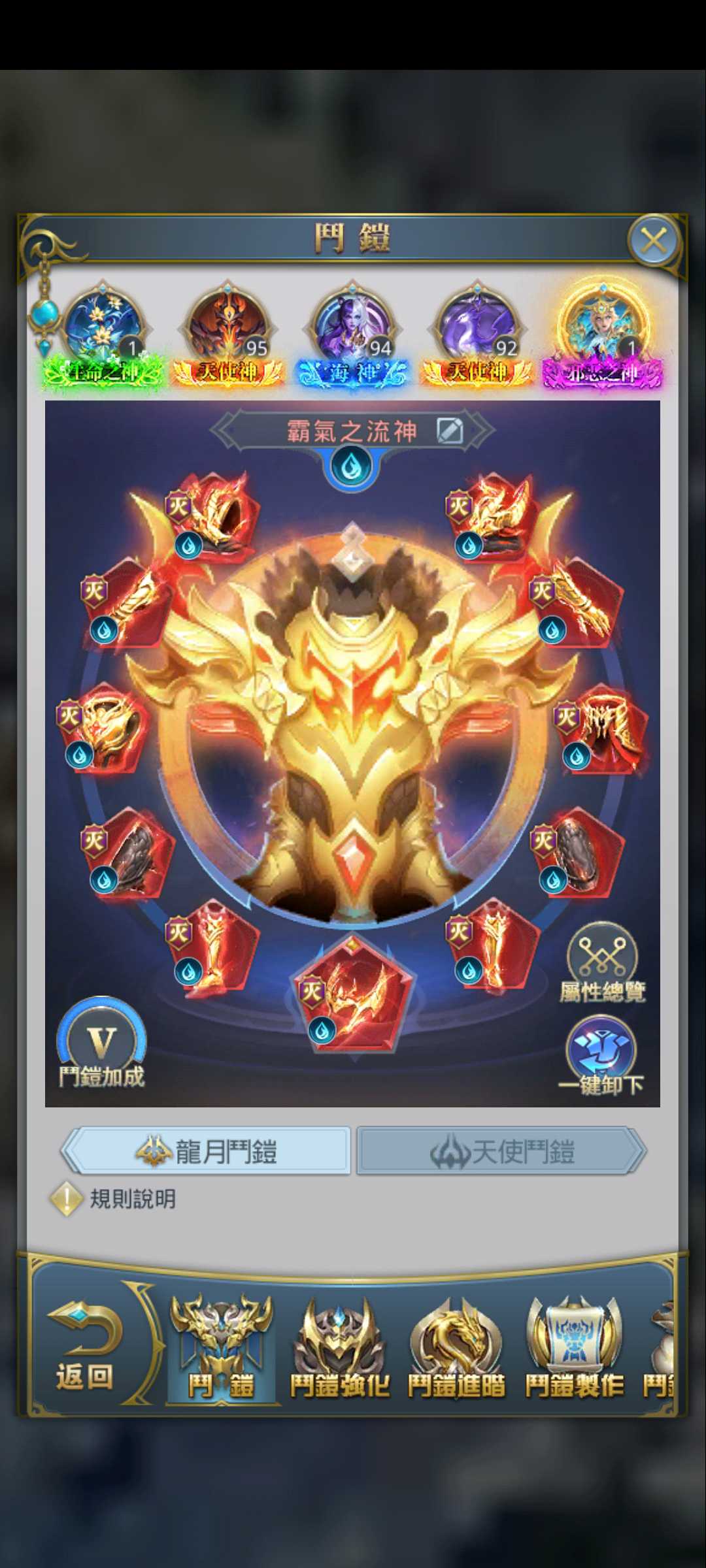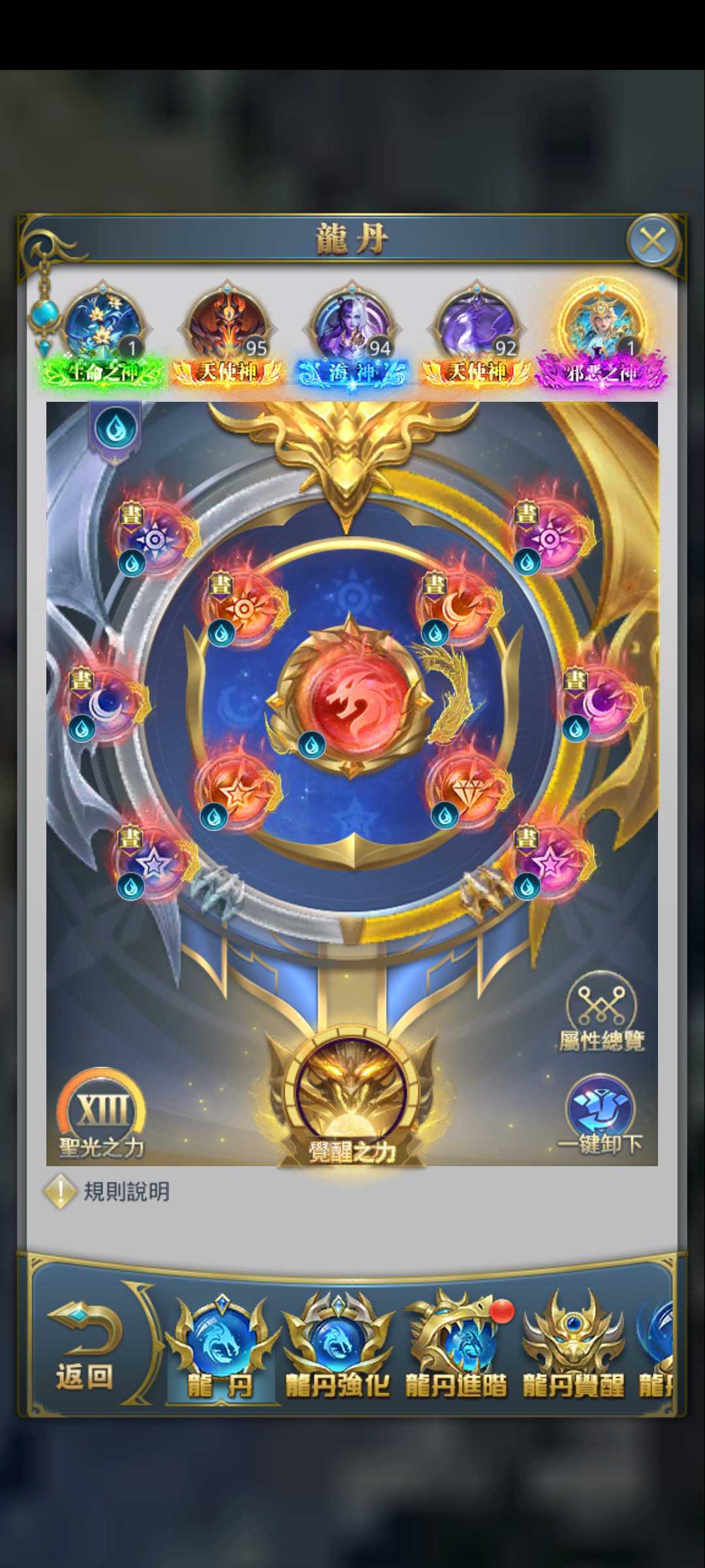 金龍榜第一!,出一隻92億多,小幅壓戰,中樞裝備除了進階覺醒之外全滿,進階材料數百多,缺魂幣升級...