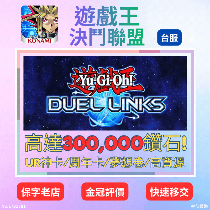 🎁帳號內容:180000~200000鑽石+100~200張UR卡+必帶1張大搜捕+3張警戒點+2張強脫+3張月之書+3張氣旋+3張宇宙+3張黑洞+3張因果+3張聖杯+2張狡猾+1張分斷+B芯片240個+青眼亞白龍+五周年死蘇+世界全開,已開40級傳送門,角色90個以上,額外已開+2張夢想UR卷+3張夢想SR卷(夢想卷浮動最高的給)+大量資源 ★發送KONAMI ID,附贈登入教學