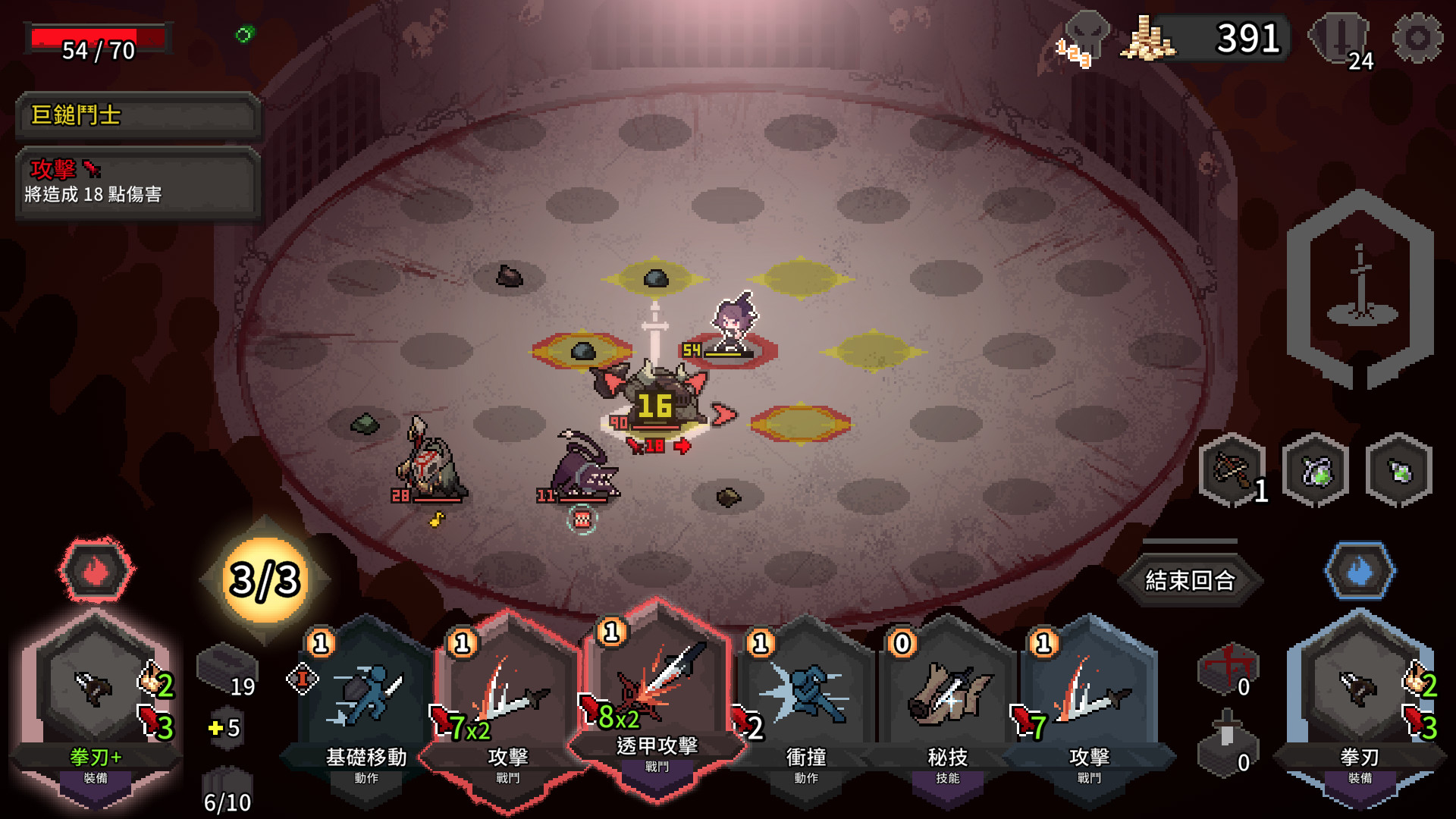 「Slay The Spire 殺戮尖塔」+「Into the Breach」= 牌組構築 x 戰棋策略 也就是 《鬥技場的阿利娜》! 玩家扮演一名為生存而戰的奴隸,在鬥技場中互相殘殺以娛樂嗜血觀眾。 Roguelike牌組構築 結合 六