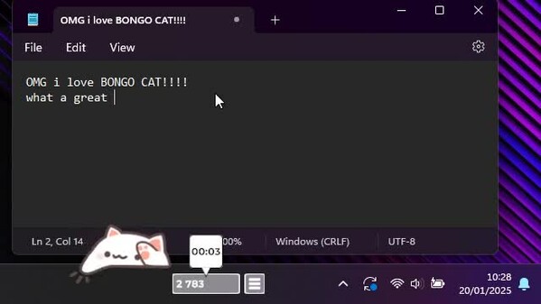 幫幫邦哥貓吧,邦哥喵需要更多的帽帽!你每按下一個按鍵,邦哥喵就會拍拍你的工作列。無論是打字,點擊,遊戲或是工作都能累積點數,你會蒐集到什麼樣的帽帽呢?