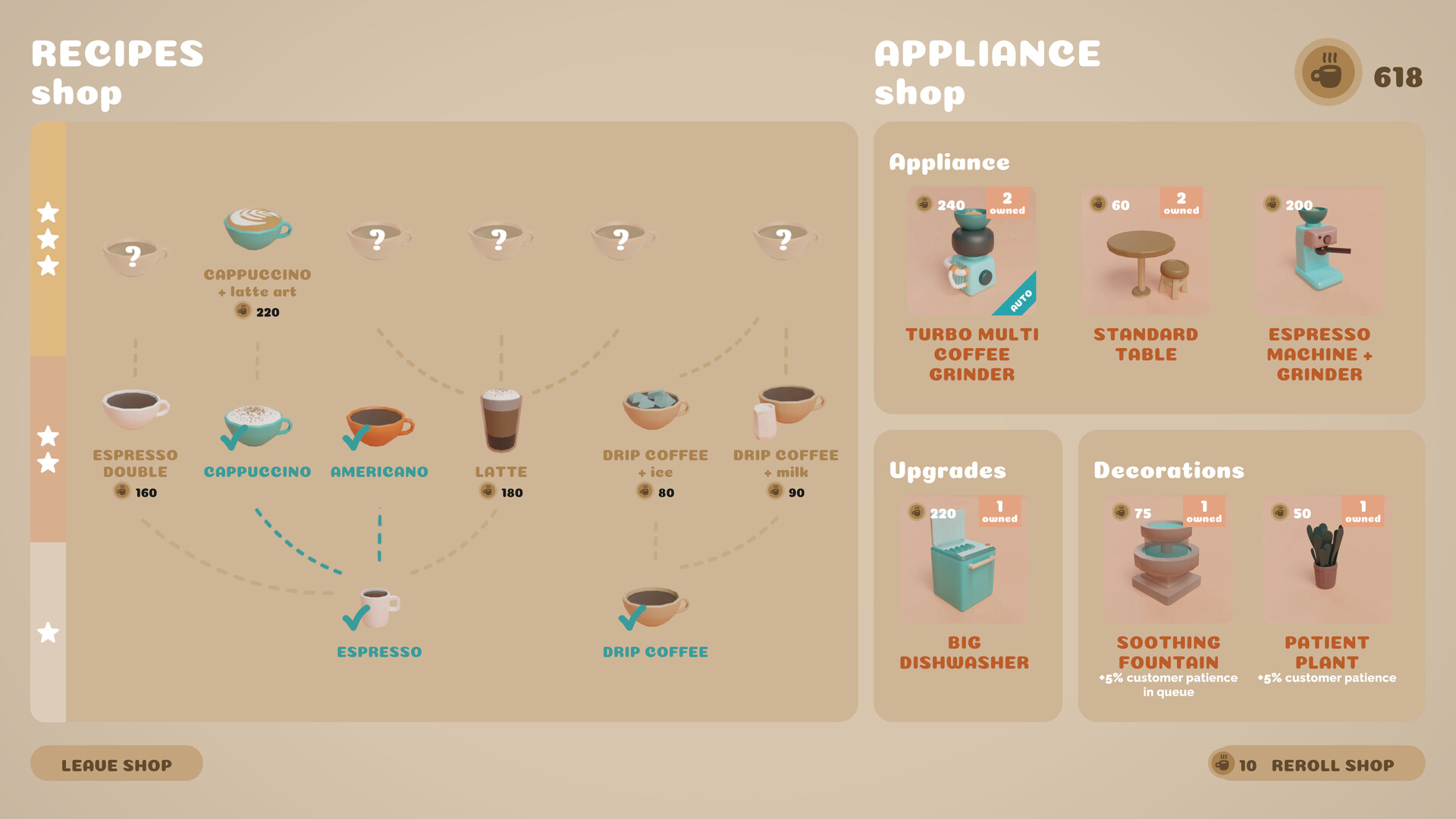 在行動咖啡車展現您的熱情!身為一位老闆,您將透過烹煮咖啡及嘗試各種食譜,一步步地打造您夢想中的行動咖啡館!在這款Roguelite的旅途中,您將遇到各式各樣的顧客,或是逛逛商店看看最