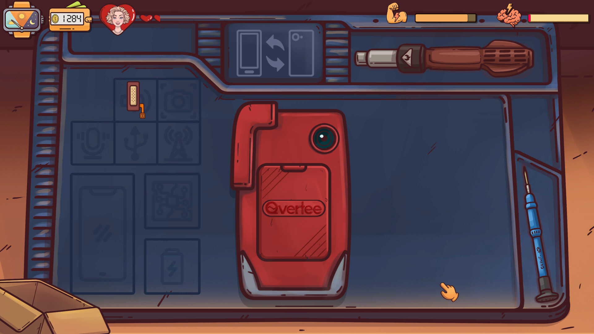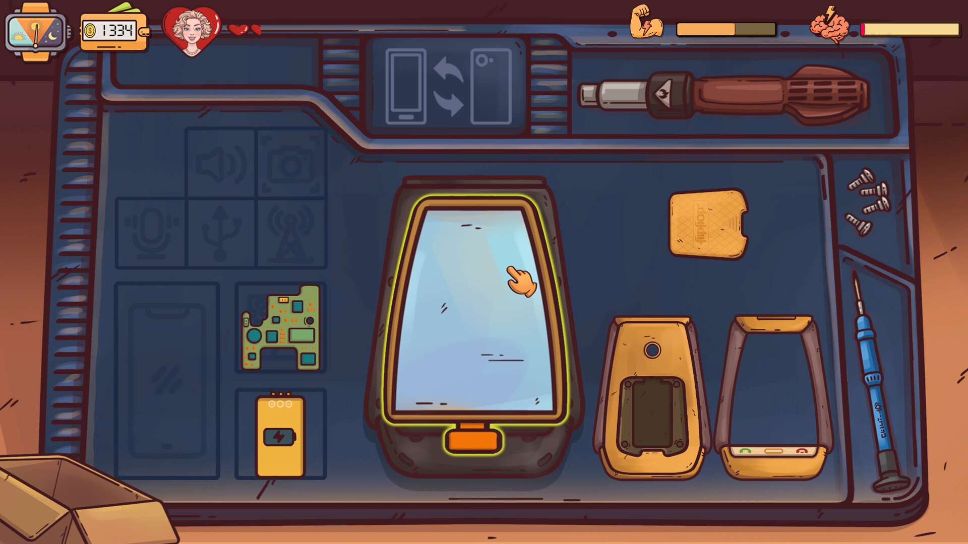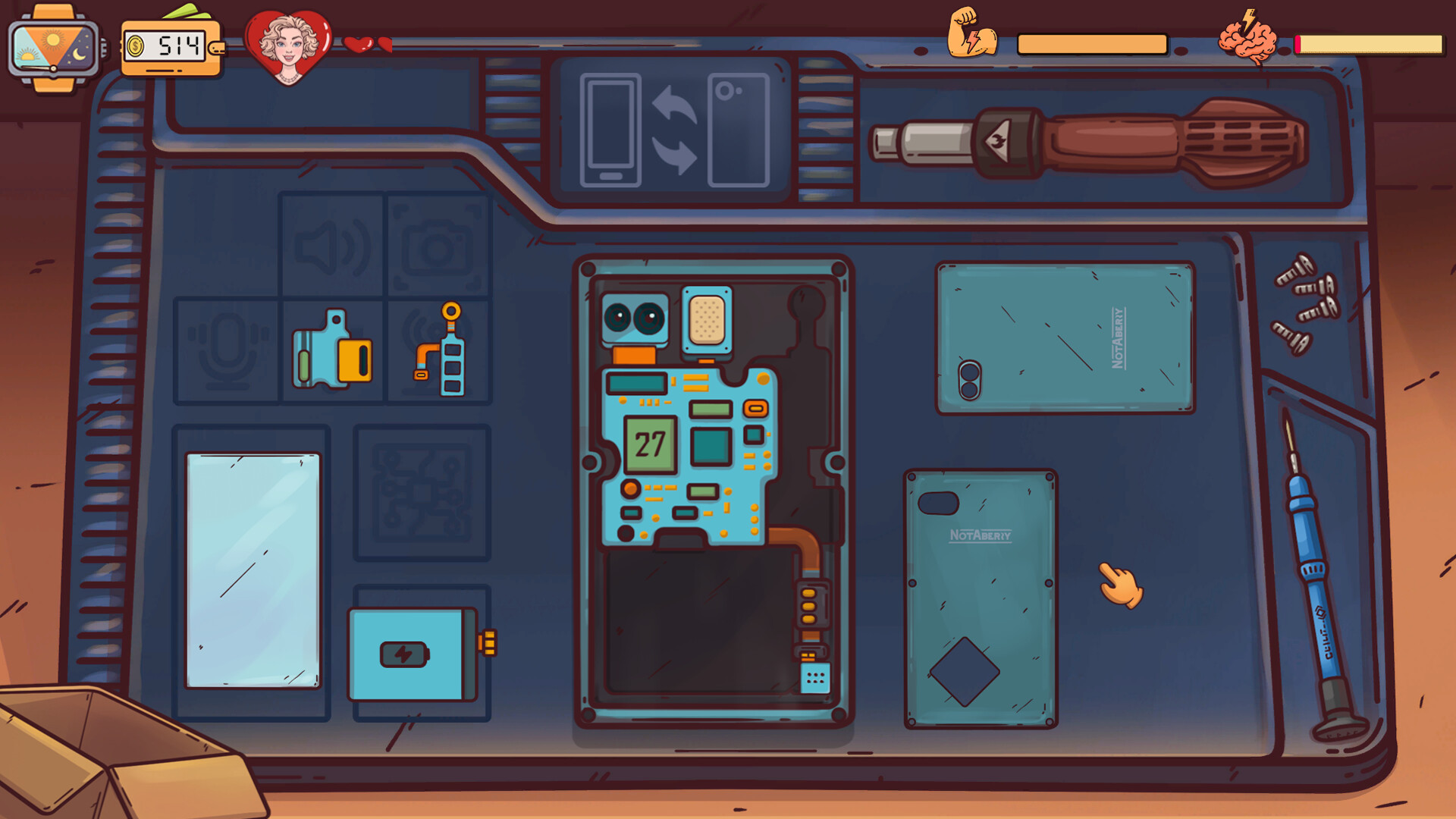 Dive into the daily work of a cozy workshop in a big city, accompanied by relaxing atmospheric music. Manage client data, balance energy and stress, and make choices that shape the story and its outcome.