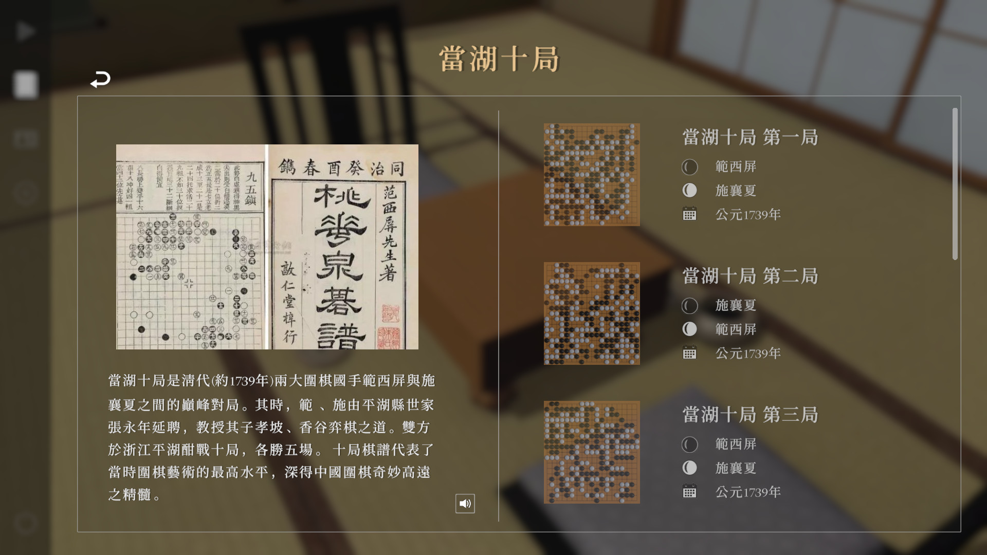 在這款遊戲中,你不僅可以探索從圍棋新手成長到職業棋手的過程,體驗頂級的圍棋聯賽,還可以重溫歷史上著名的圍棋棋局。全程的配音教程可以讓身為圍棋初學者的你輕松感受圍棋的魅力。