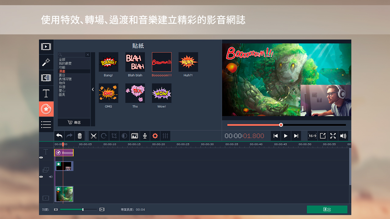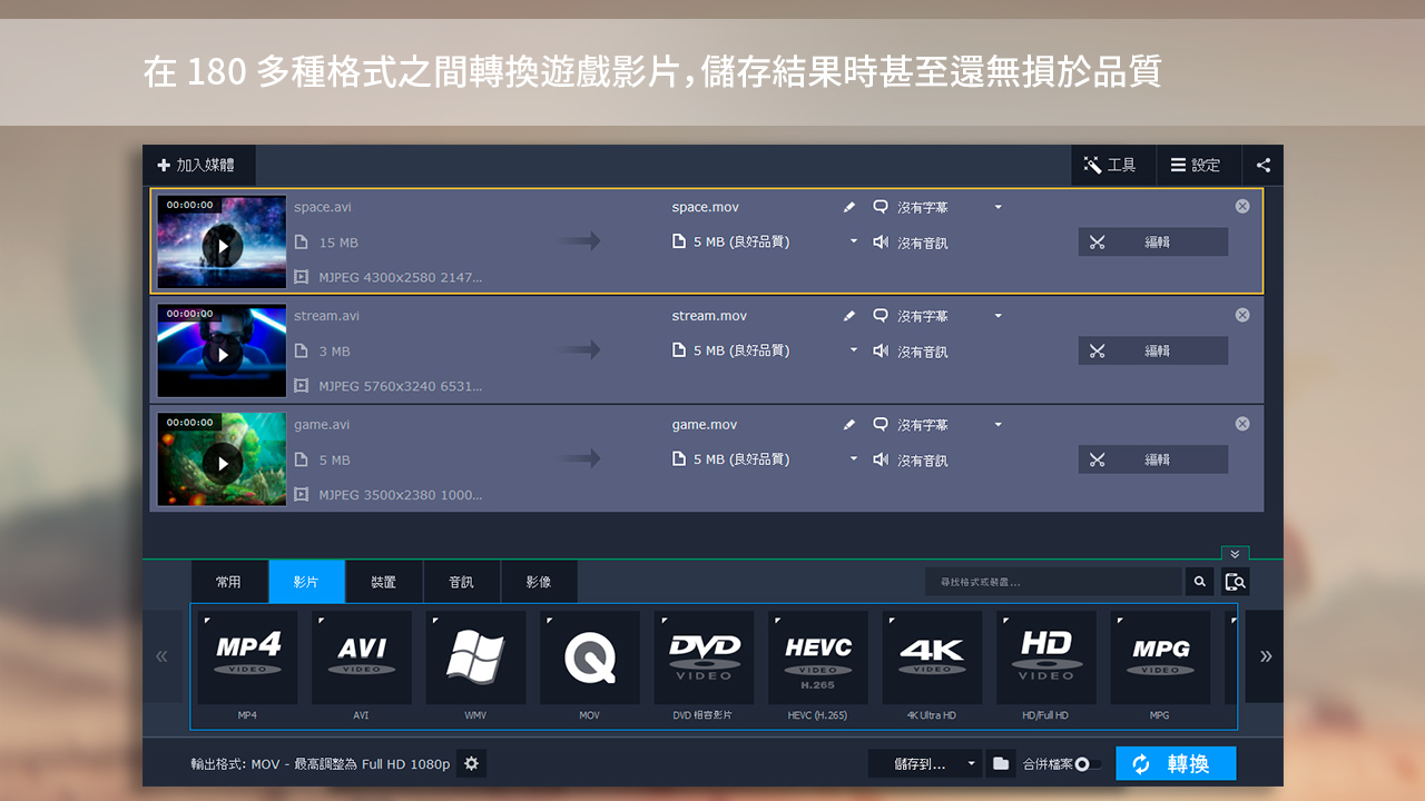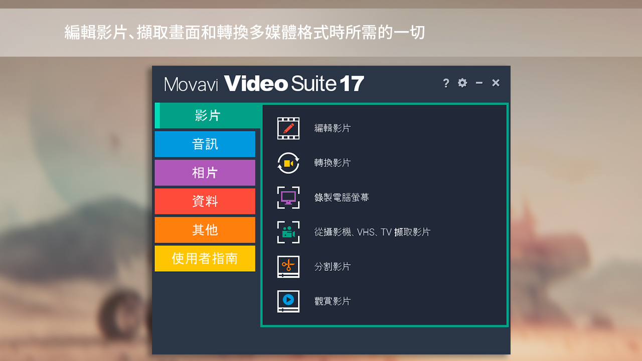 利用這個集結 Movavi’s 頂尖應用程式的終極套組,輕鬆管理所有媒體檔案:聯結和編輯影片、擷取桌面活動、錄影帶數位化,以及將檔案轉換成 180 多種不同的格式。