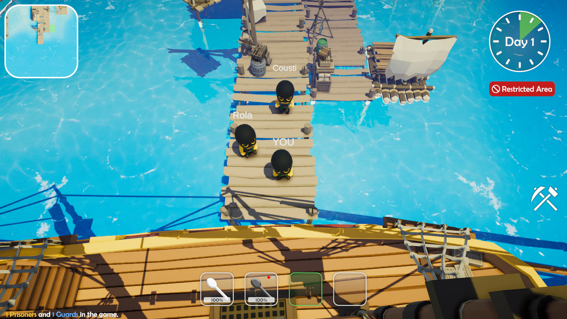 An online game that you'll play with 3-11 players as a Prisoner or a Guard and will try to escape or prevent escapes. Loot, Craft, and make your way to the exit, or investigate and arrest wanted players as a guard!