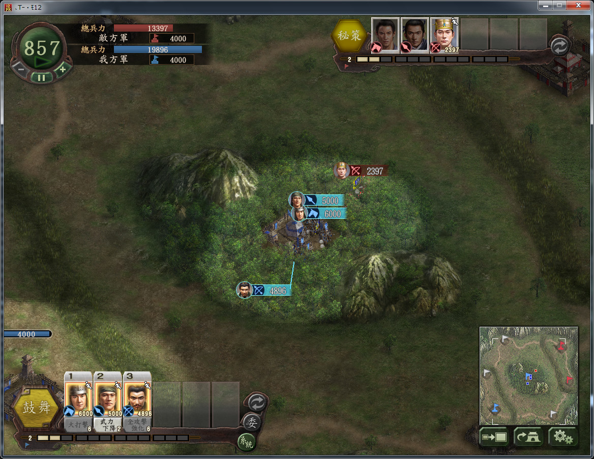 「赤壁之戰」等三國志中的許多大逆轉劇。本作中引入了能夠實現此戲劇性勝利的大規模策略「秘策」。在「即時戰鬥」中,根據戰況採取的戰術將成為勝利的關鍵。此外,威力加強版將強化「